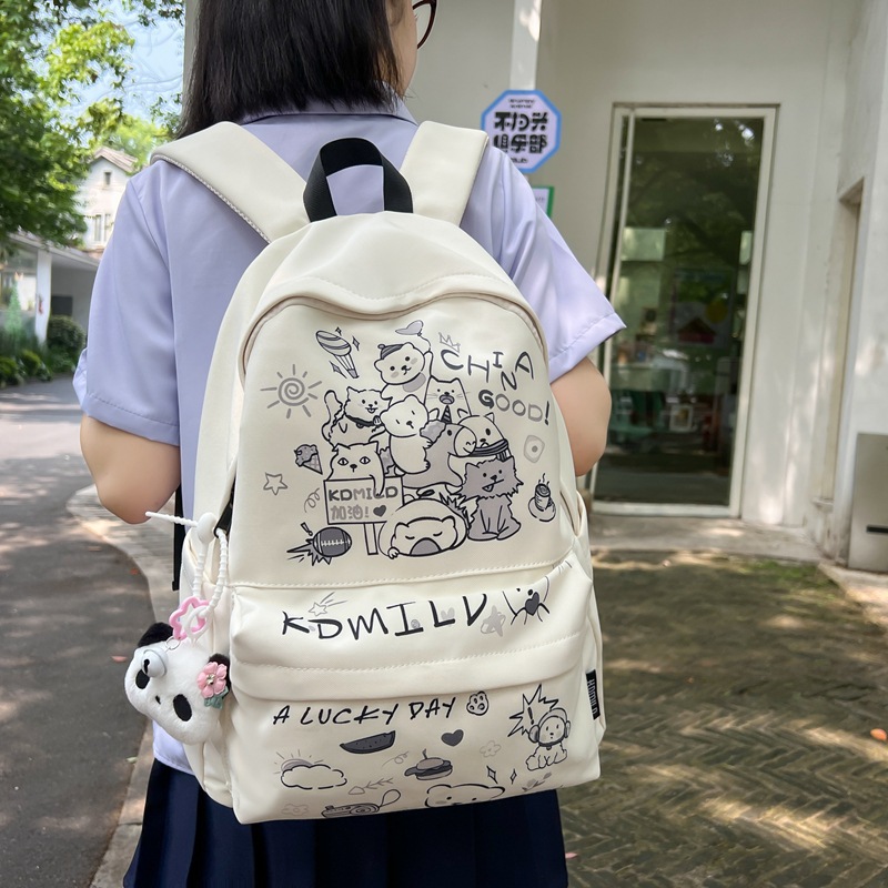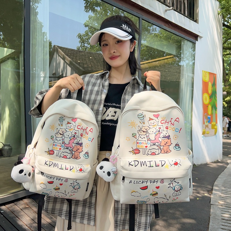 Graffiti Cartoon Backpack Men's and Women's Large Capacity 2024 New Junior High School Student Schoolbag College Student Class commuter bag