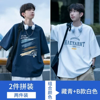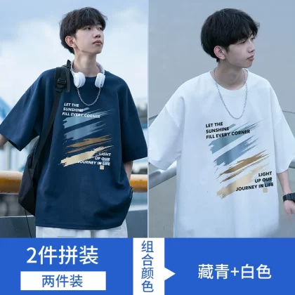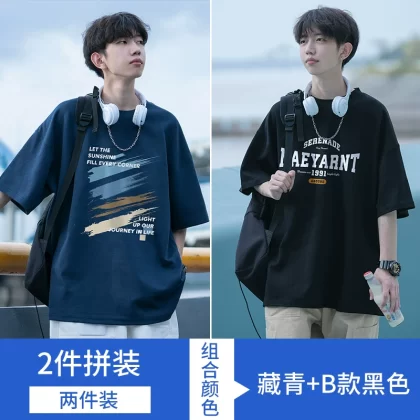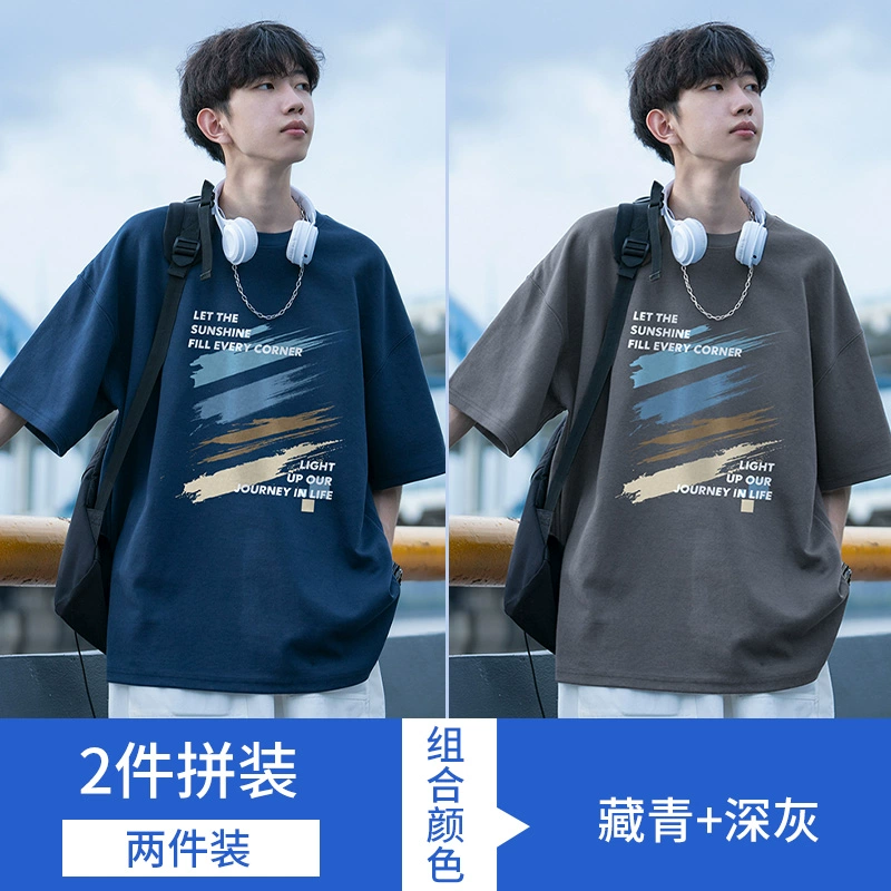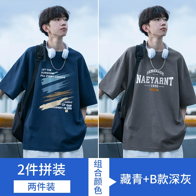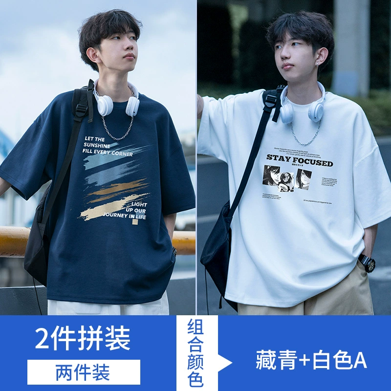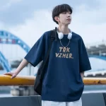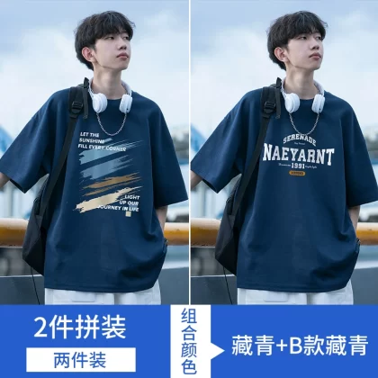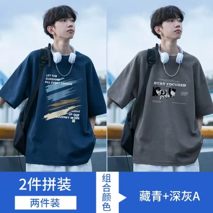 | nameOriginal | Graffiti Japanese navy blue men's ins short-sleeved t-shirt |