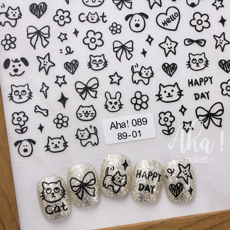 | nameOriginal | Graffiti nail stickers wholesale cute cartoon kitten puppy flower bow star manicure nail stickers nail jewelry |