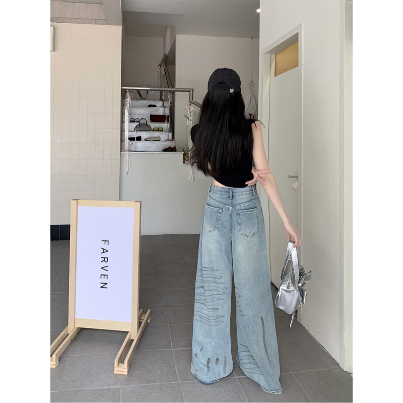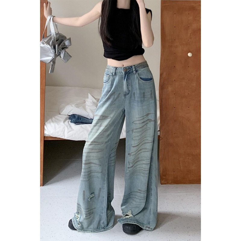 ~ Graffiti Painted Ripped Wide Leg Casual Retro Jeans Loose Slimming Trousers Women