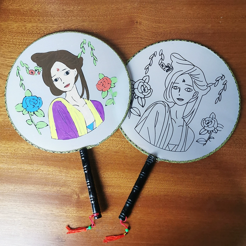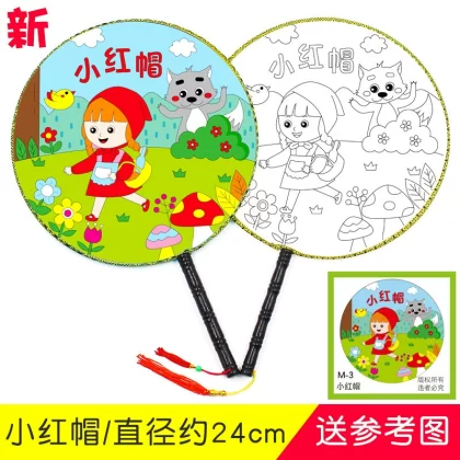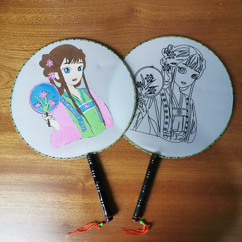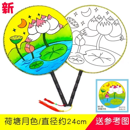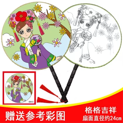 | nameOriginal | Graffiti palace fan diy material package children's handmade blank round fan painting hand-painted round fan for street stall |