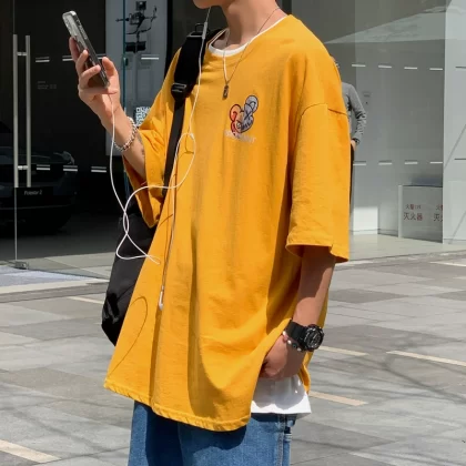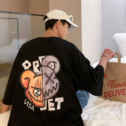 Doodle Hong Kong style student casual big size five-point sleeve cartoon