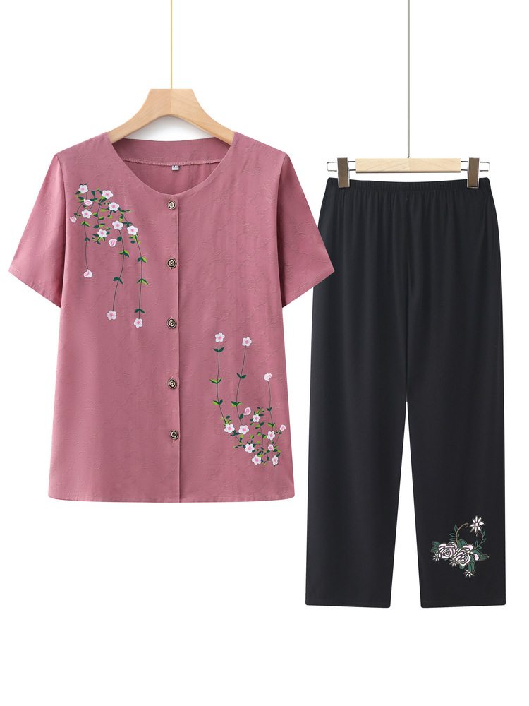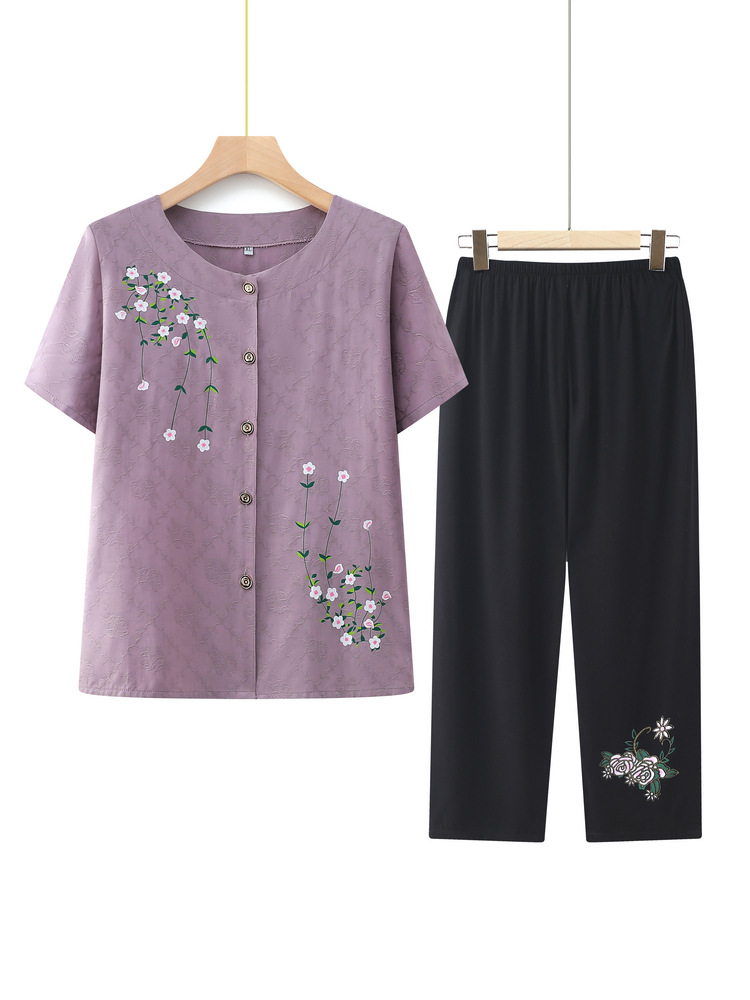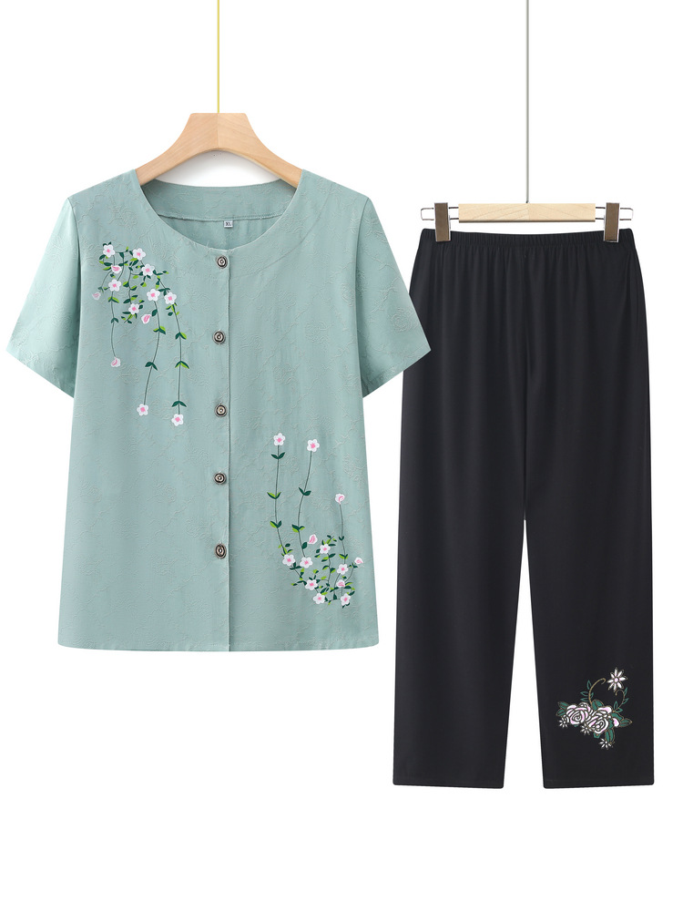 | nameOriginal | Grandma 2024 Summer Short-sleeved Wide-leg Pants Two-piece Set Women's Middle-aged and Elderly Embroidered Cotton Cardigan Mother's Summer suit |