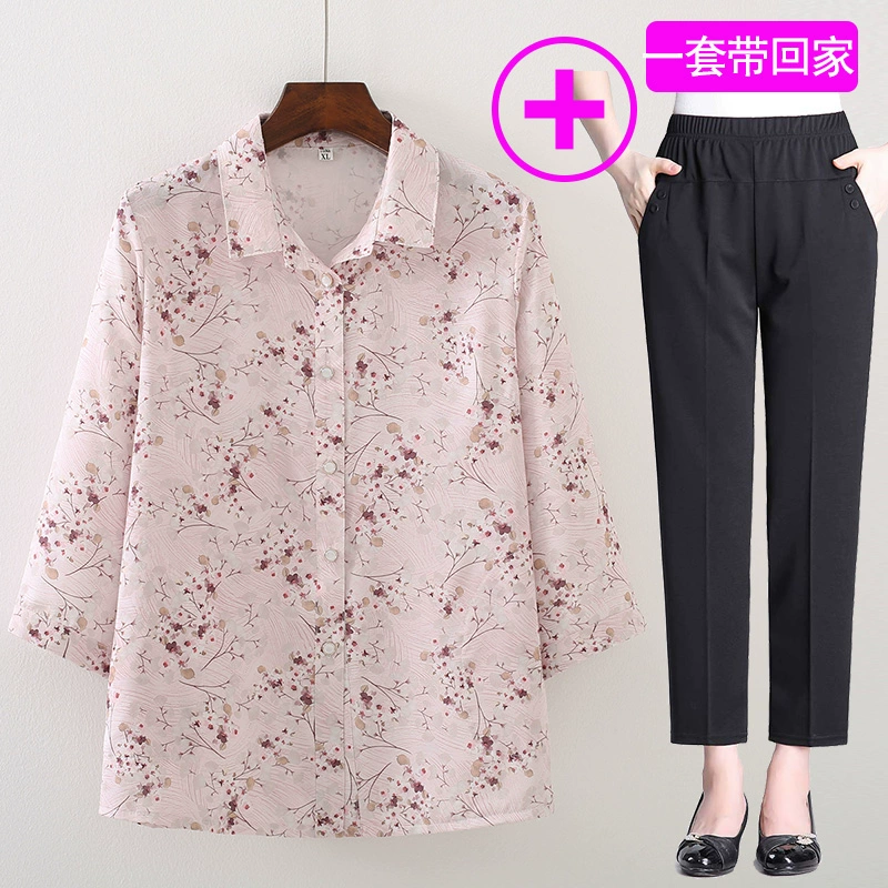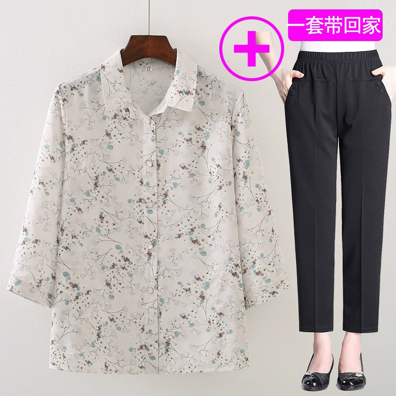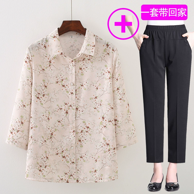 Grandma noble ladies cardigan imitation silk shirt summer clothing