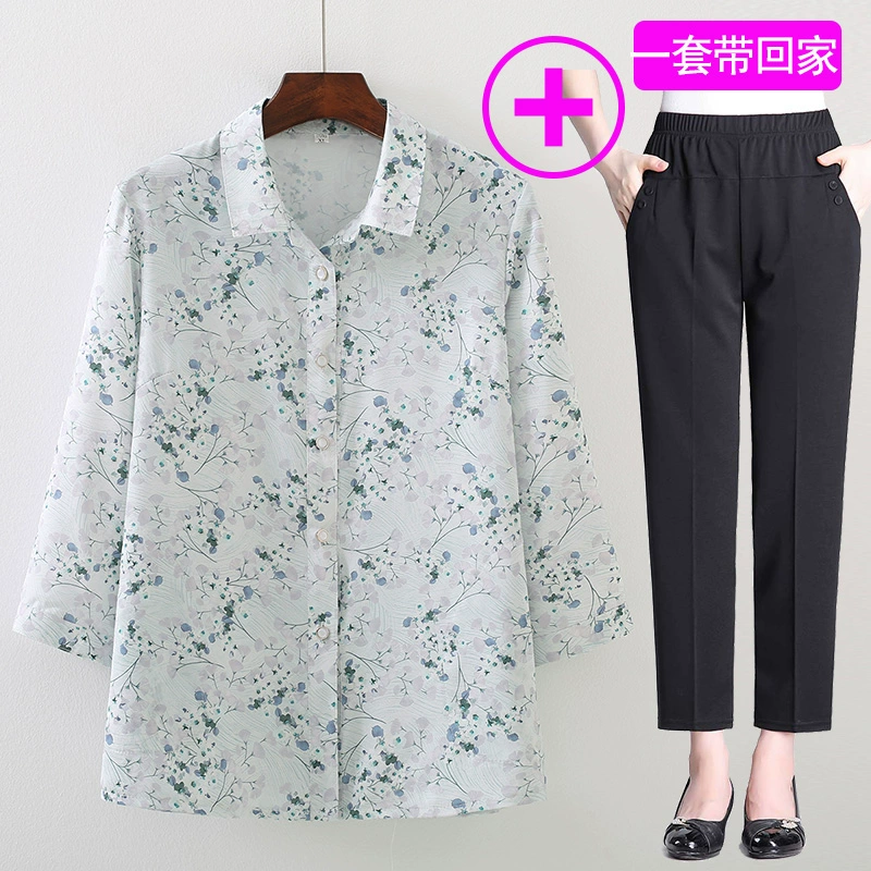 Grandma noble ladies cardigan imitation silk shirt summer dress