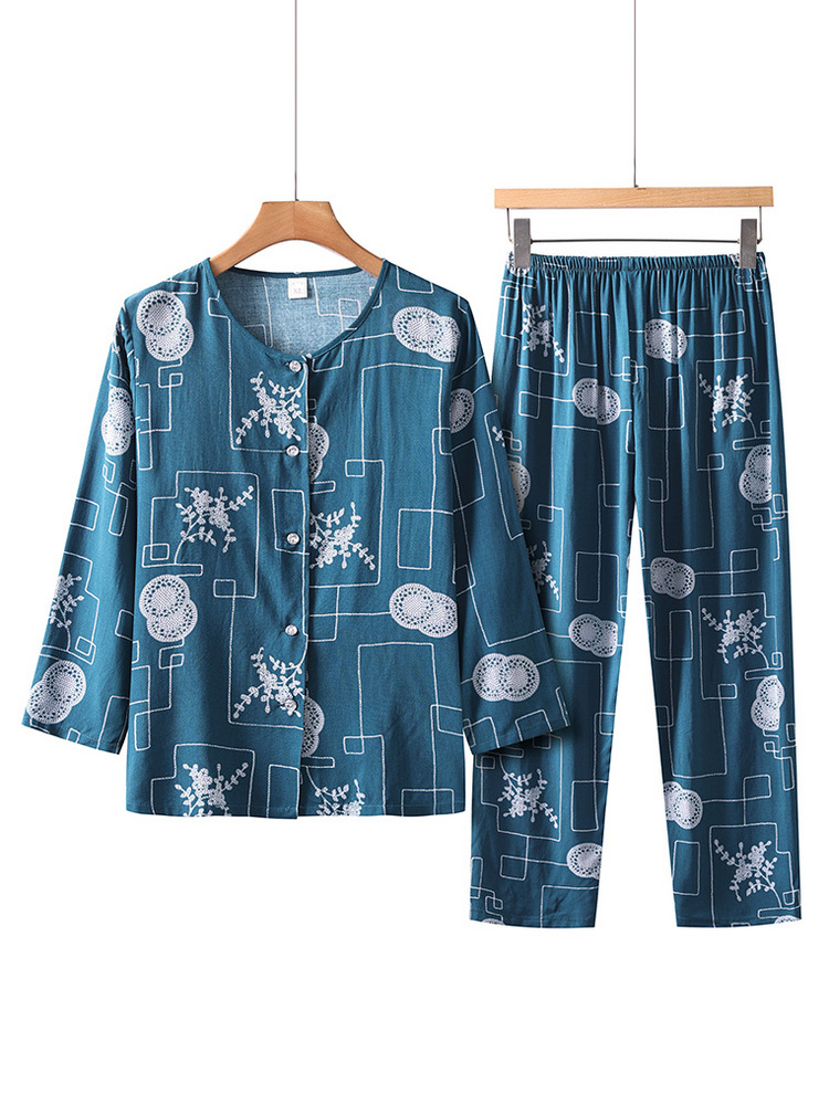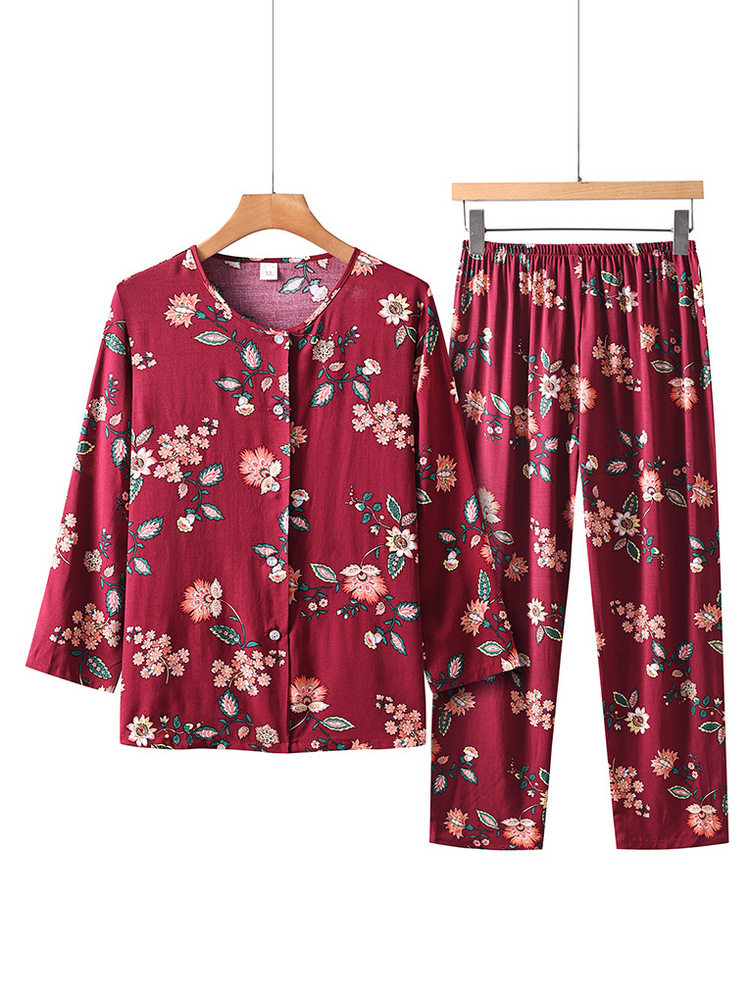 | nameOriginal | Grandma Spring and Summer Cotton Silk Pajamas suit Middle-aged and Elderly Spring Long-sleeved Trousers Two-piece Set Female Mother plus size Cardigan |