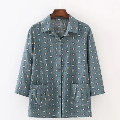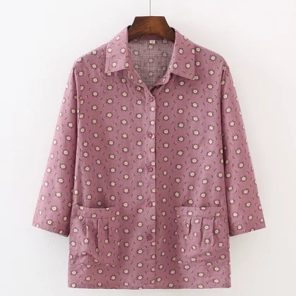 | nameOriginal | Grandma summer mid-sleeve cotton shirt middle-aged and elderly women's summer thin shirt mom 7080 year old top |