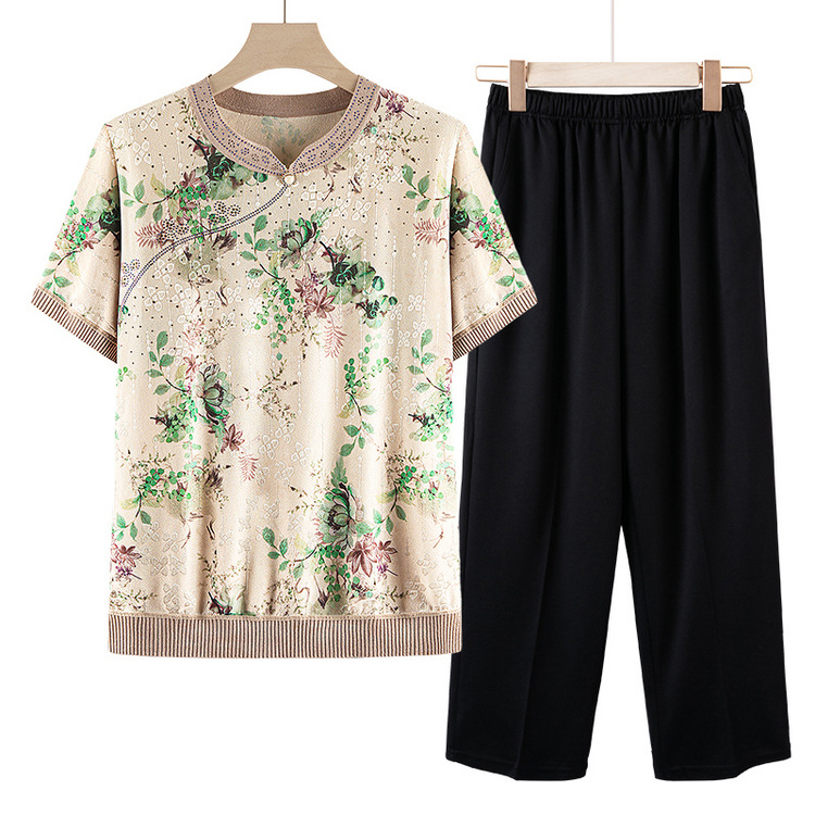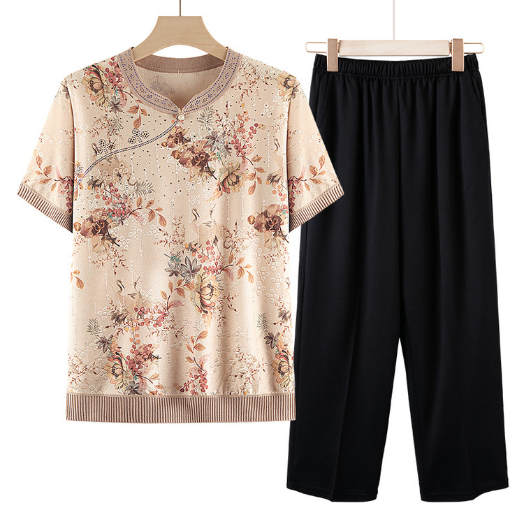 | nameOriginal | Grandma's Summer Clothes suit Middle-aged and Elderly Women's Short-sleeved Shirt 60-year-old 70-year-old Mother's T-shirt Ice Silk Knitted Shirt |