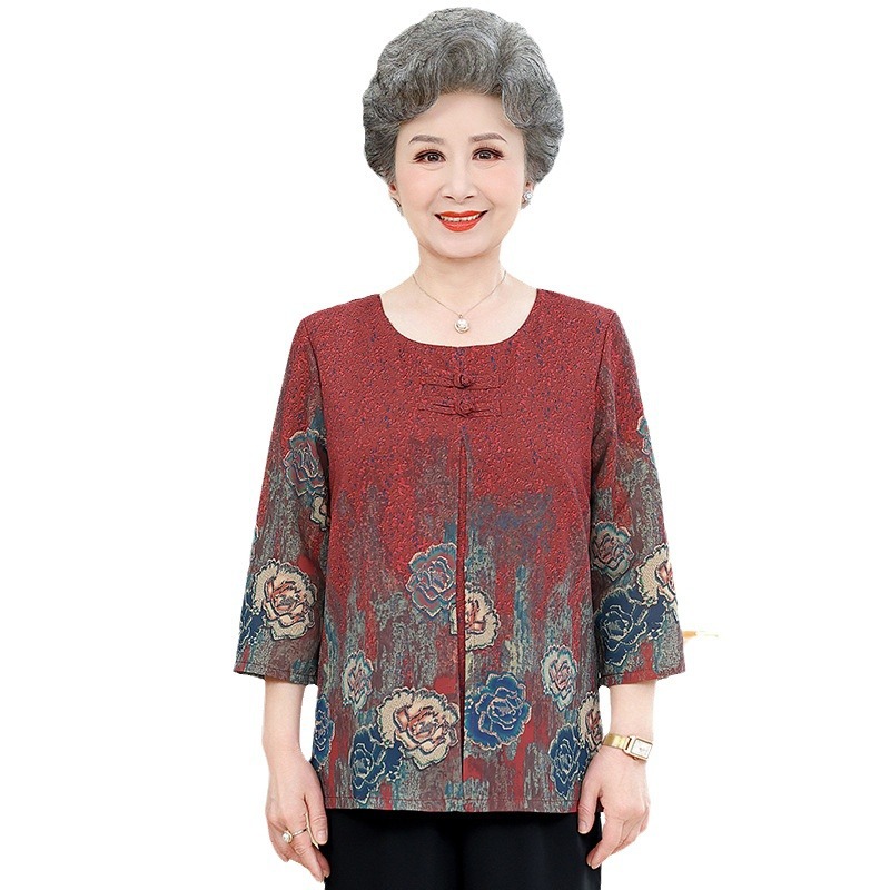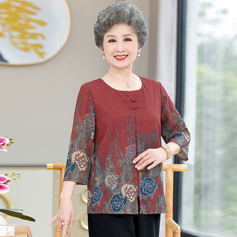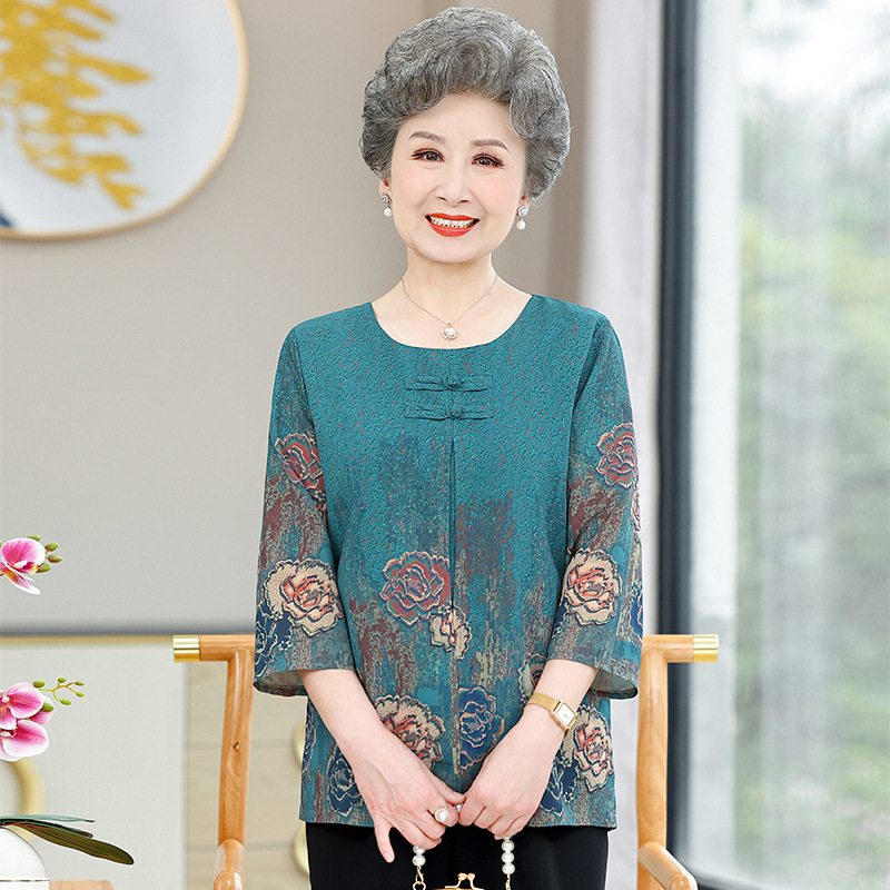| nameOriginal | Grandma's Summer Dress Seven-point Sleeve Loose Western-style Thin Old Lady's Clothes Mother's Fake Two-piece Top Fashionable Women's Clothes |