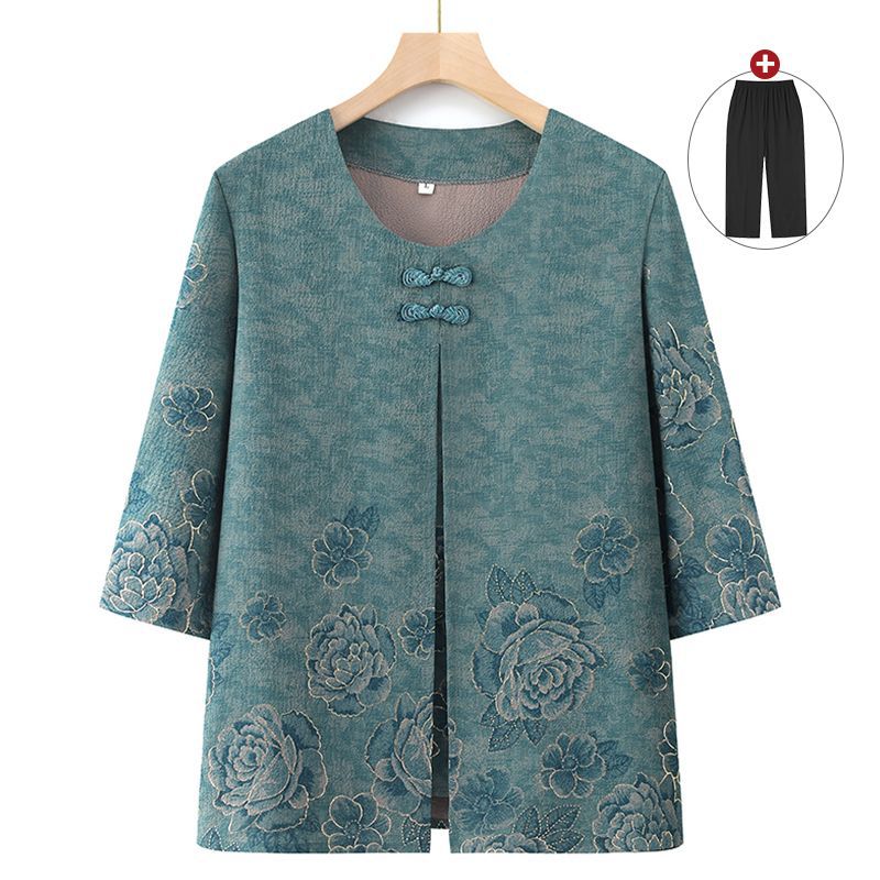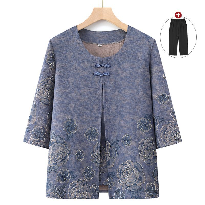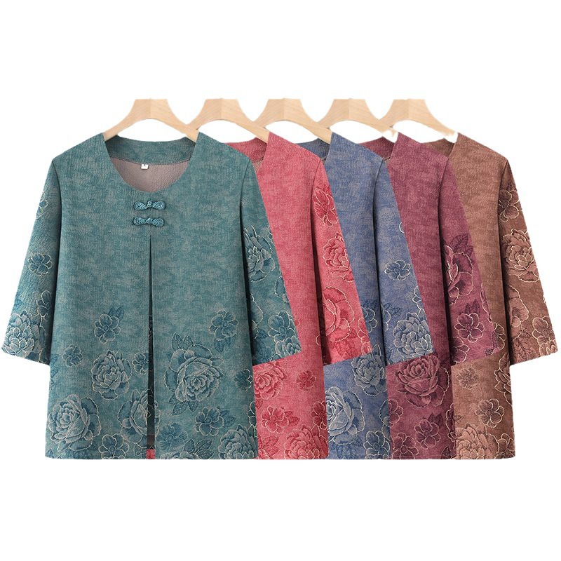 | nameOriginal | Grandma's Summer Dress Seven-Sleeve Shirt Loose Thin Old Lady's Clothes Mother's Fake Two-Piece Top Elderly Women's Clothing |