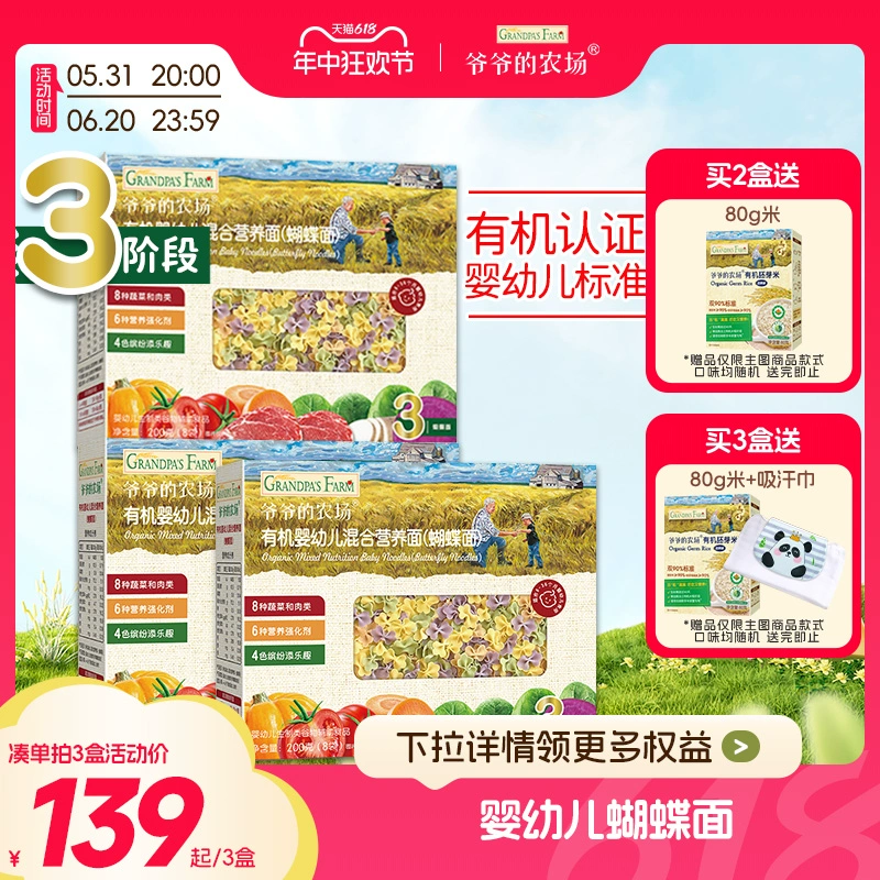 Grandpa's Farm Butterfly Noodles Shell Shaped Noodles Nutritional Baby 9 Months + Food Complementary Vegetables Infant High Speed ​​Noodles