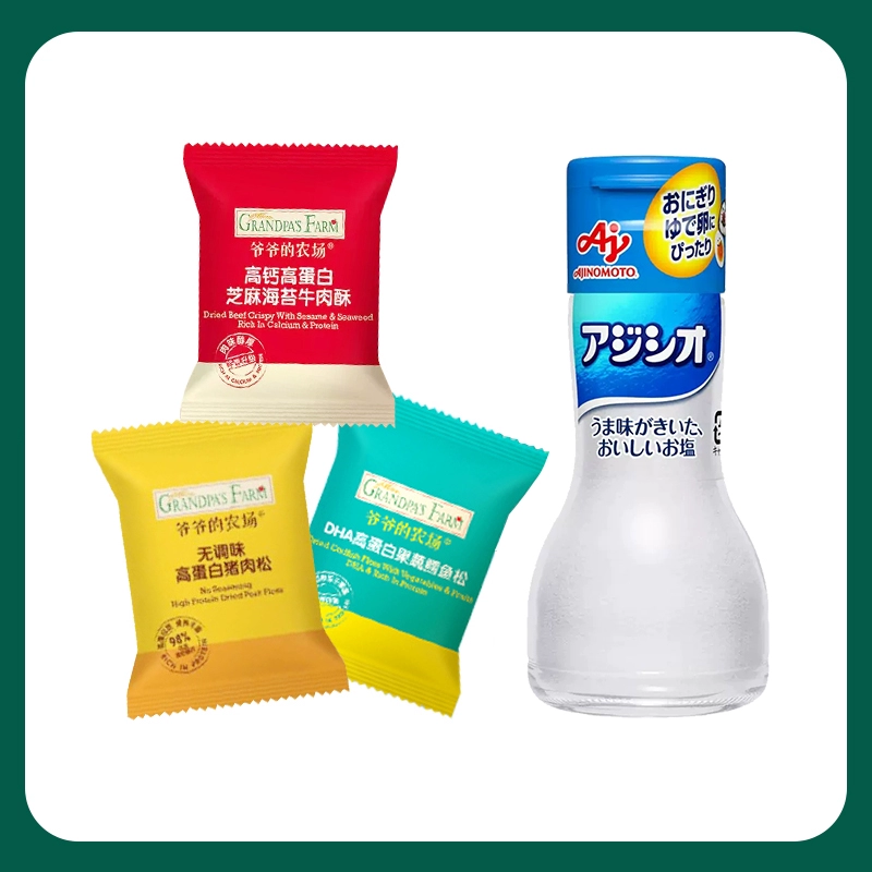 | nameOriginal | Grandpa’s farm pork floss bibimbap, beef crisps, pure pork added, no free baby supplement recipe |