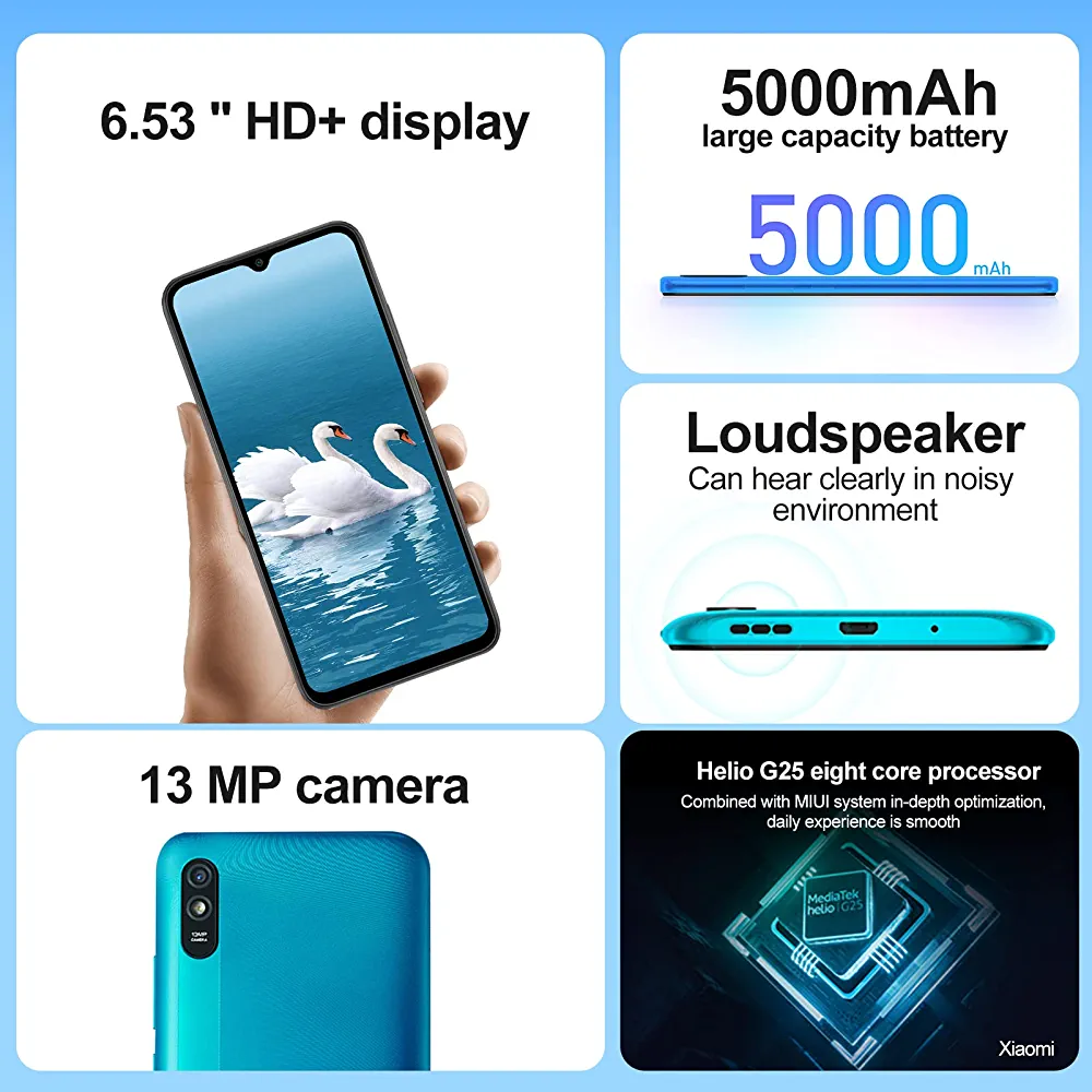 Introducing our latest smartphone with advanced features to enhance your mobile experience. The phone runs on MIUI 12 operating system and is powered by MediaTek Helio G25 Octa core 2.0GHz CPU and PowerVR8320 GPU, providing seamless performance. With 2GB RAM and 32GB ROM, you can store all your important files and documents. The phone also has expandable storage up to 512GB.
