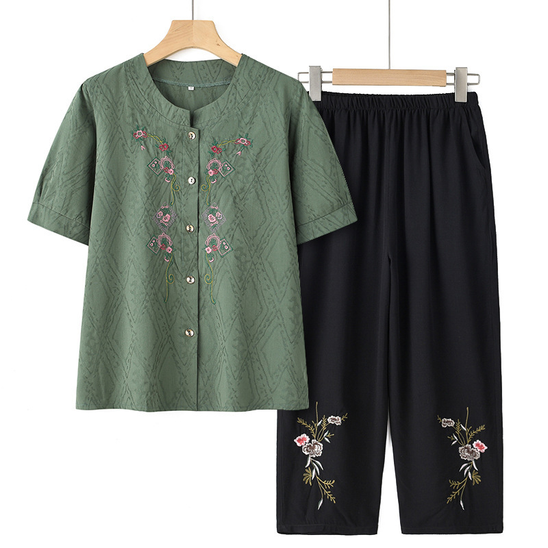 | nameOriginal | Granny summer short-sleeved cotton and linen suit middle-aged and elderly women's clothing cardigan Tang suit old man wife clothes mother shirt |