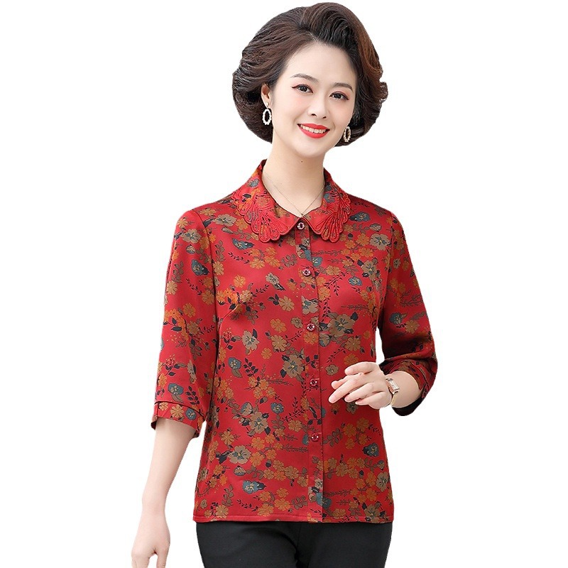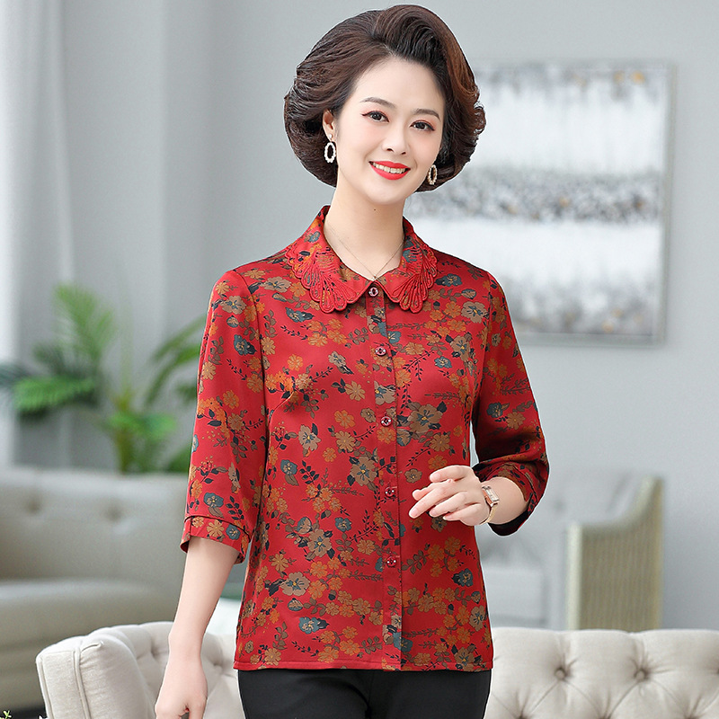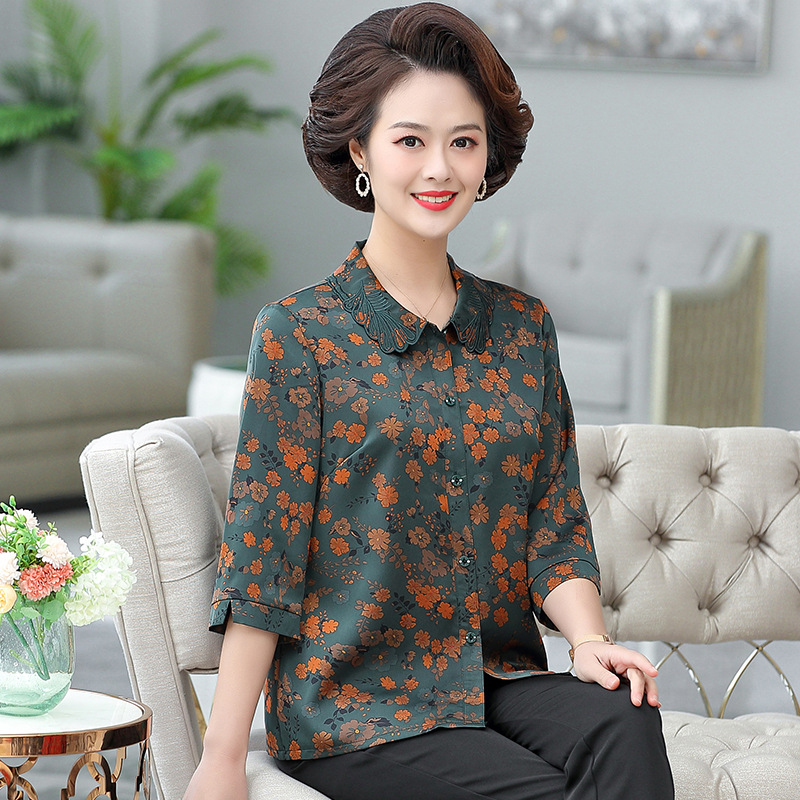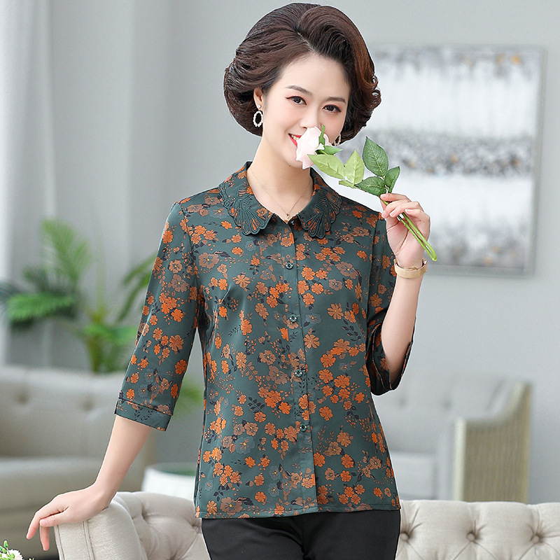 | nameOriginal | Granny's Spring and Summer Wear Thin Shirt Women's Summer Loose plus size and Seven-Sleeve Retro Top for Older Mothers |