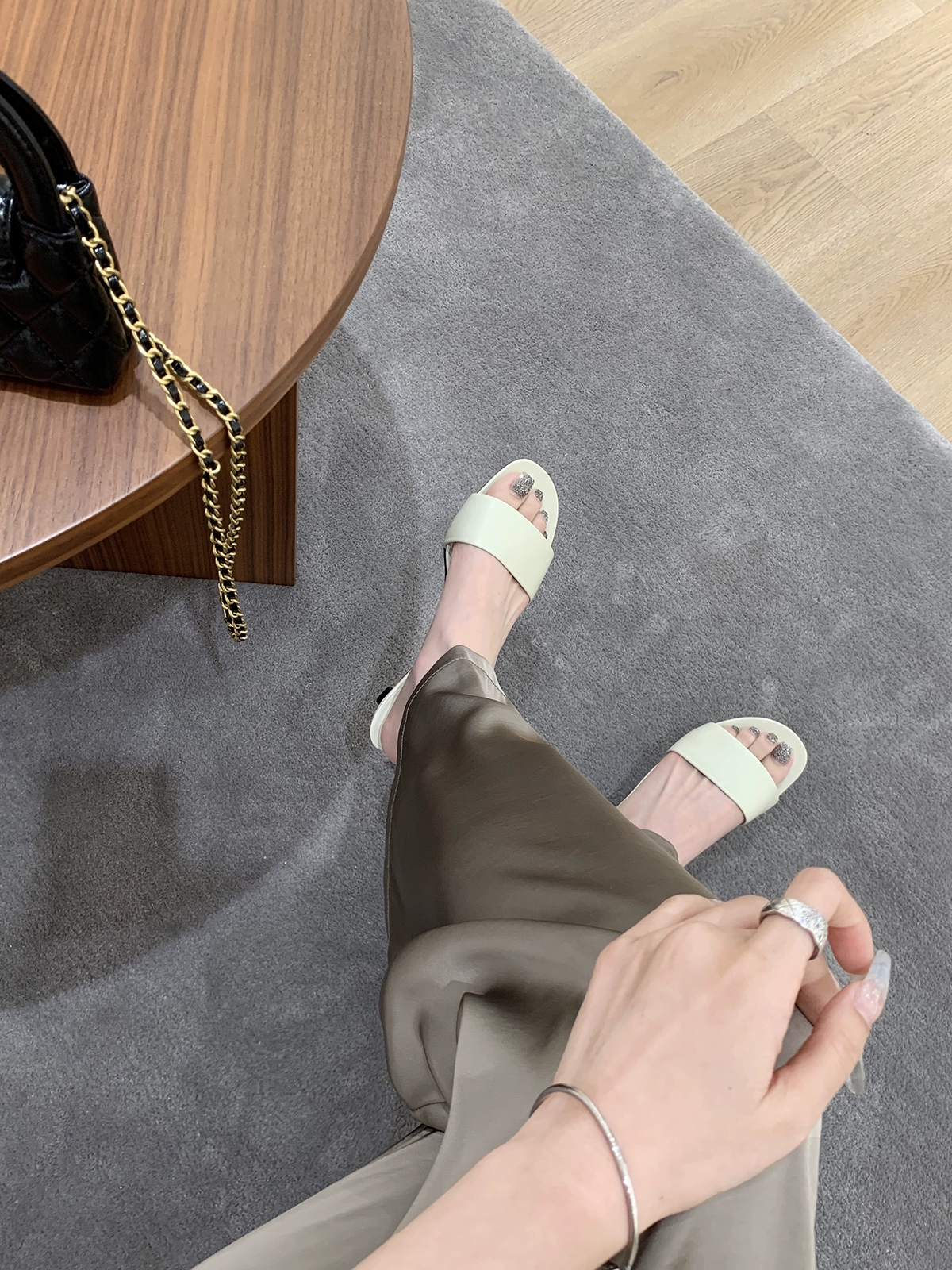 Grape Mom Studiolee minimalist temperament is really silk, with high heels, kittens, cold slippers women’s summer