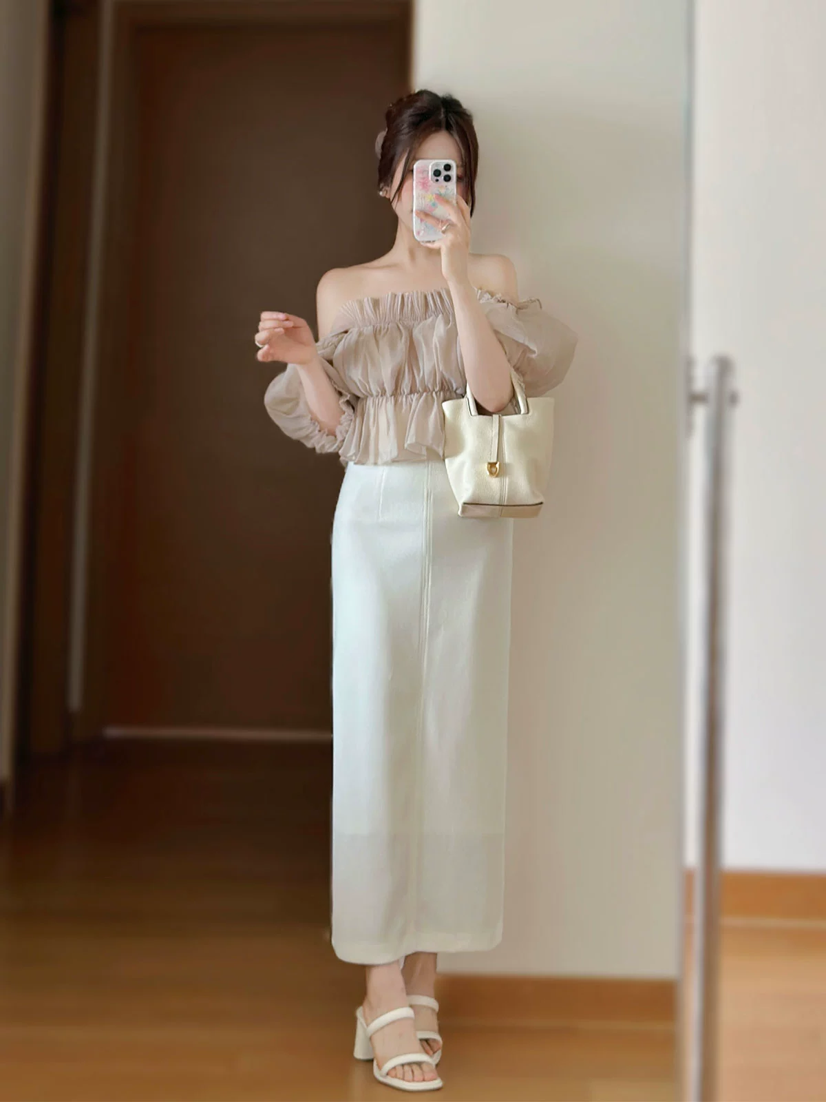 | nameOriginal | Grapefruit Girl Elegant Solid Color Straight Slit Skirt |