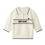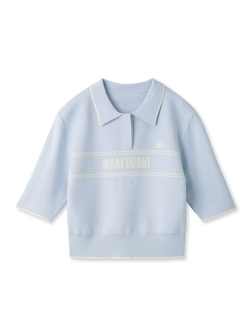 Grapefruit girl small lapel knitted polo shirt with pleated embroidery