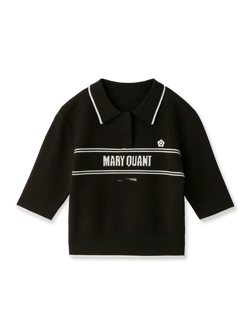 Grapefruit girl small lapel knitted polo shirt pleated embroidery