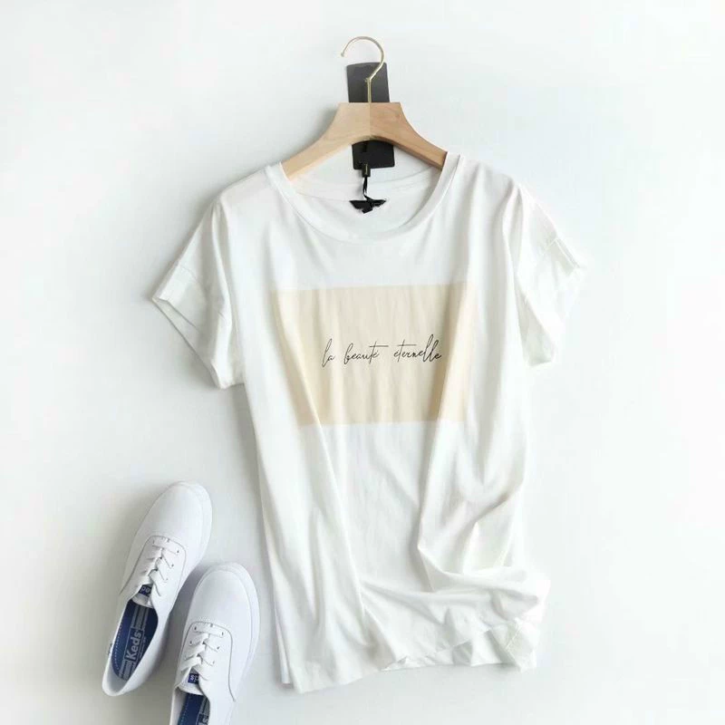 Pattern all -cotton printed collar shoulder short -sleeved T -shirt