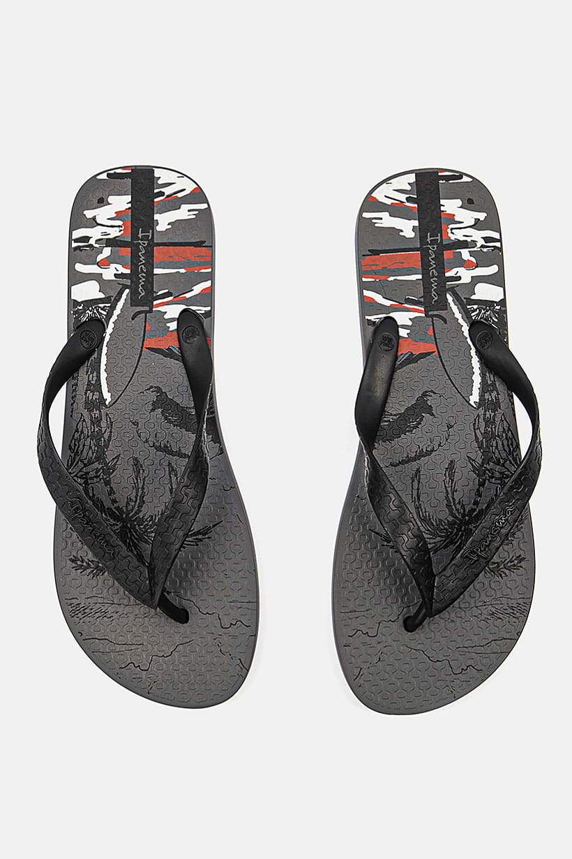 | sub_Categories | Shoes, Slides & Slippers, men graphic print slip on slippers grey and black and red |