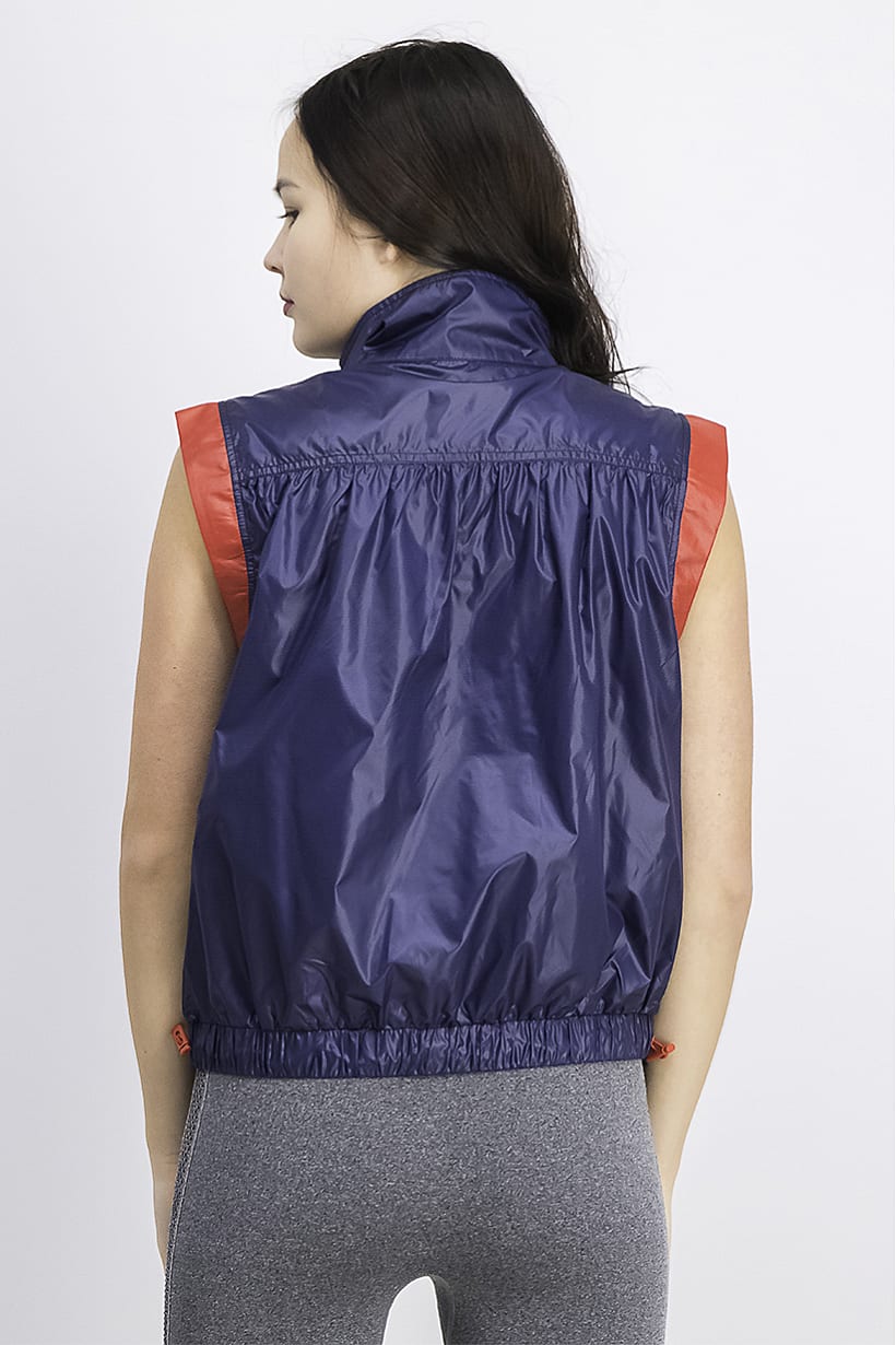 Graphic Wind Breaker Vest for Women with Stand Collar in Peacoat and Chinese Red.