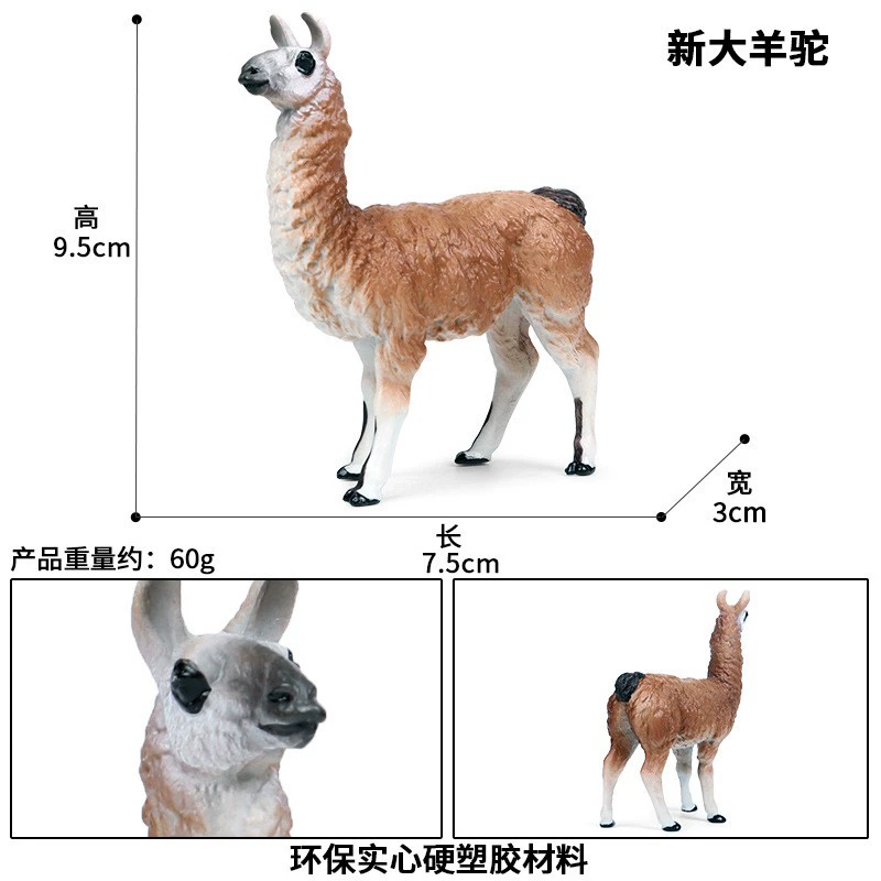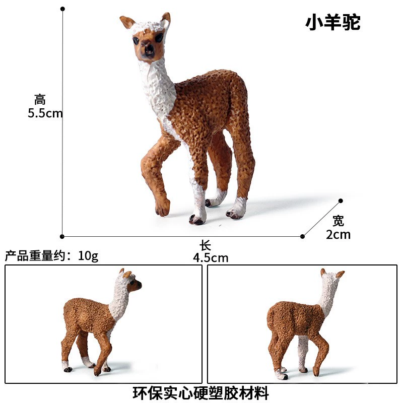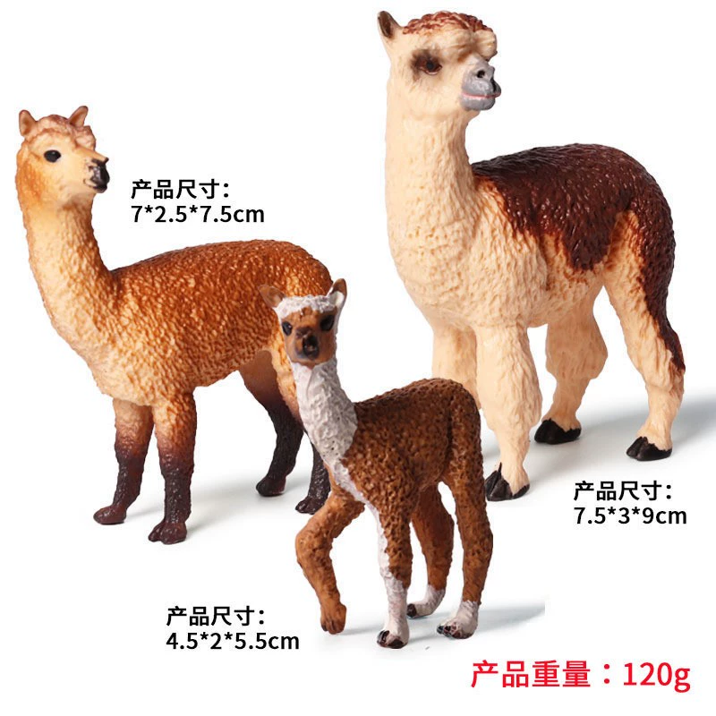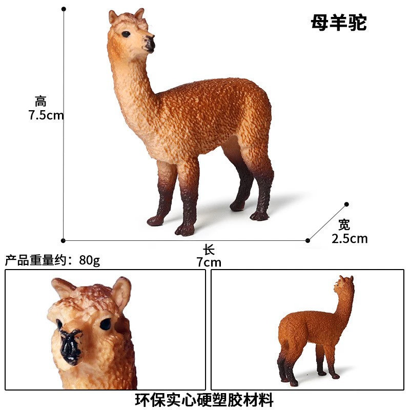 | nameOriginal | Grass mud horse alpaca simulation animal model male alpaca doll children's toy wild animal female alpaca pose doll |