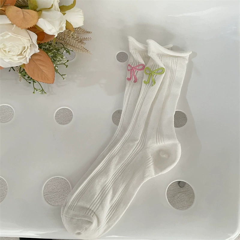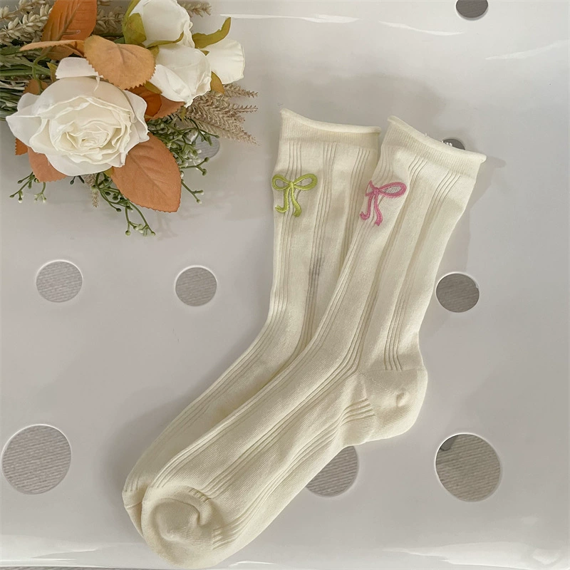 | nameOriginal | Gray bow embroidered girl's sweet thin socks |