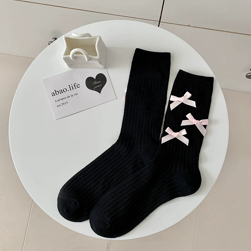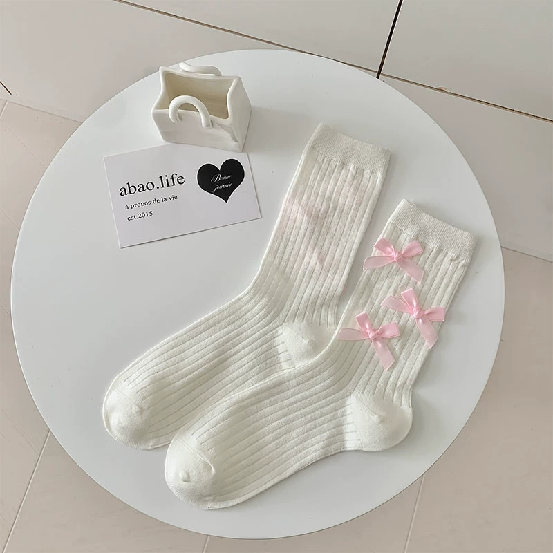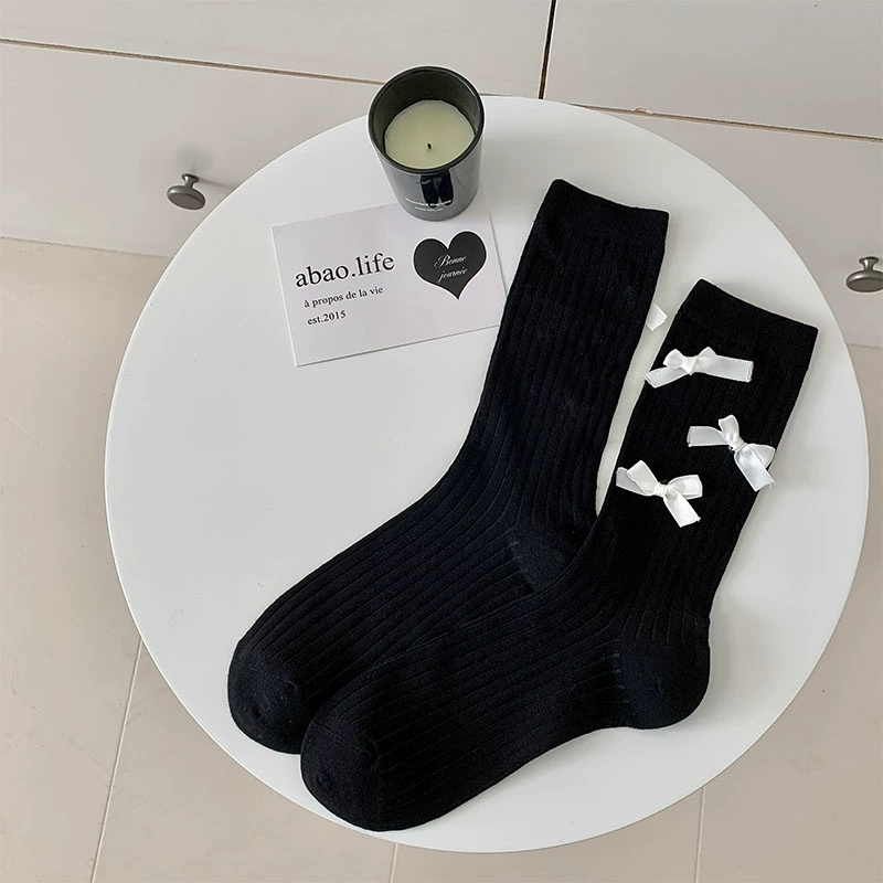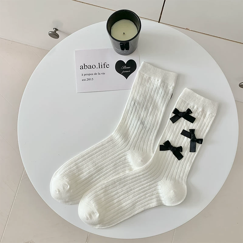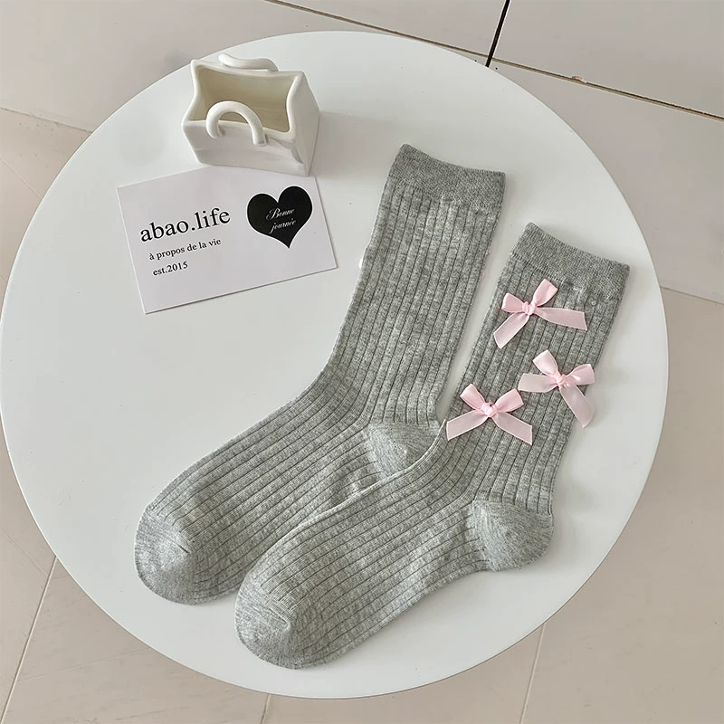 | nameOriginal | Gray bow socks women's mid-calf socks ins trendy stockings spring and summer thin jk socks ballet style white stockings |