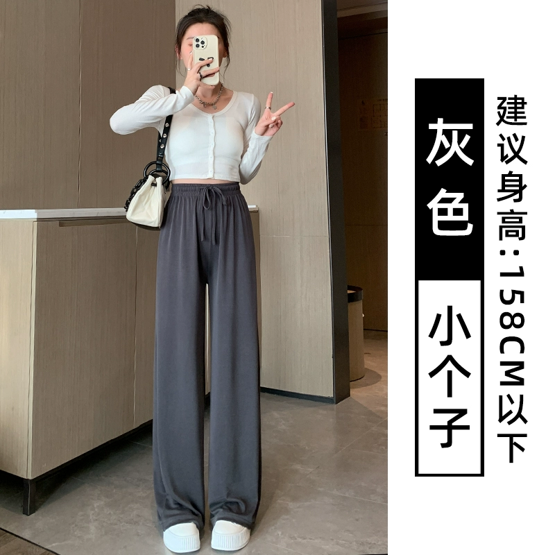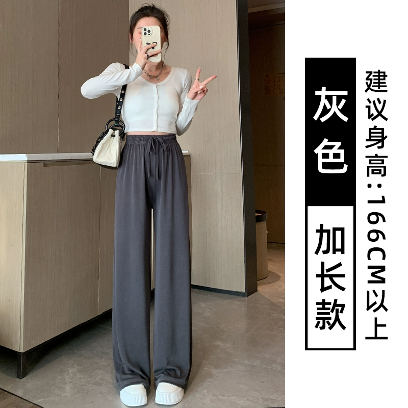 Gray copper-ammonia wide-leg pants for women in summer thin high waist drape straight narrow version casual cold ice silk sunscreen pants