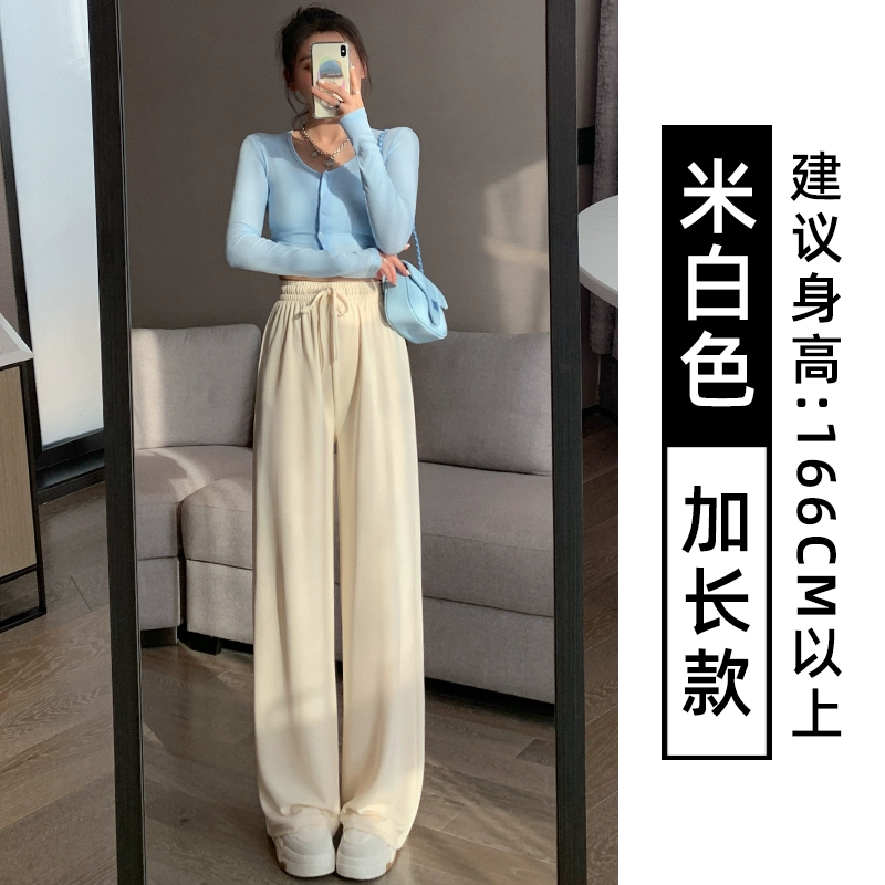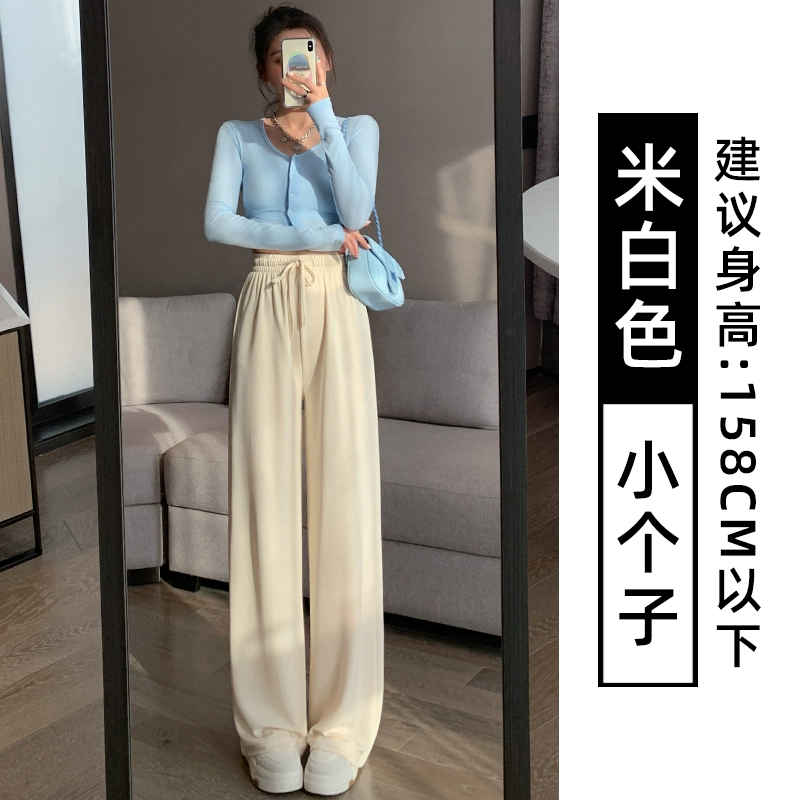 Gray Cupro Silk Wide Leg Pants Women's Summer Thin High Waisted Drape Straight Narrow Version Casual Cool Ice Silk Sun Protection Pants