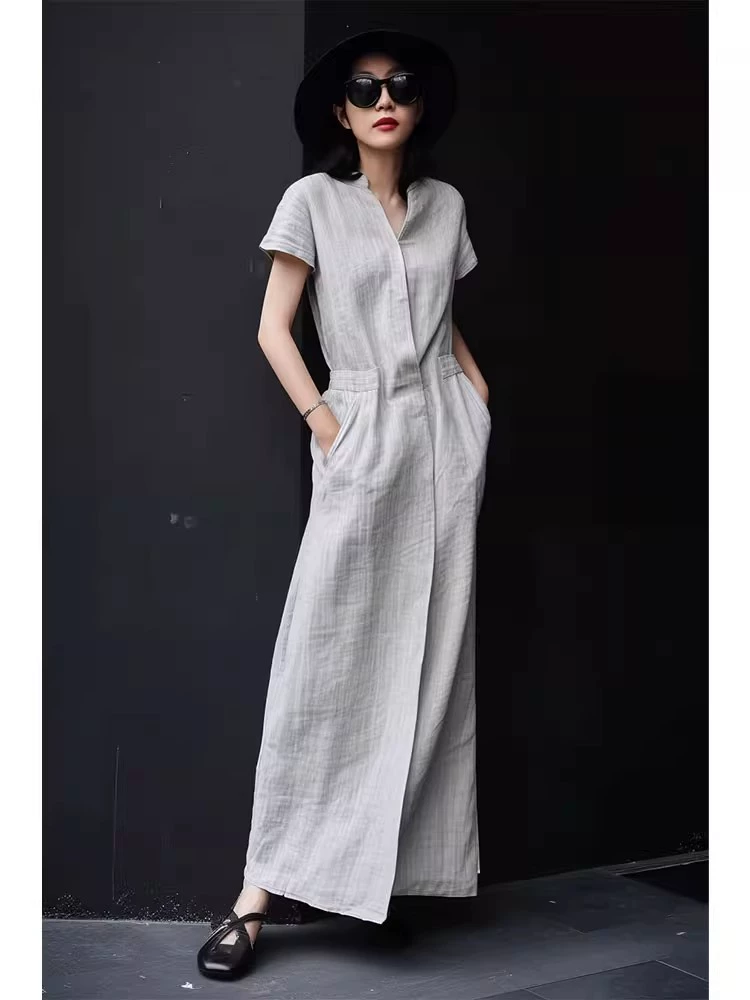 Gray dress formal occasion goddess style linen