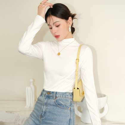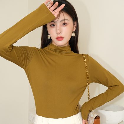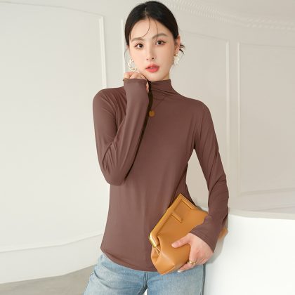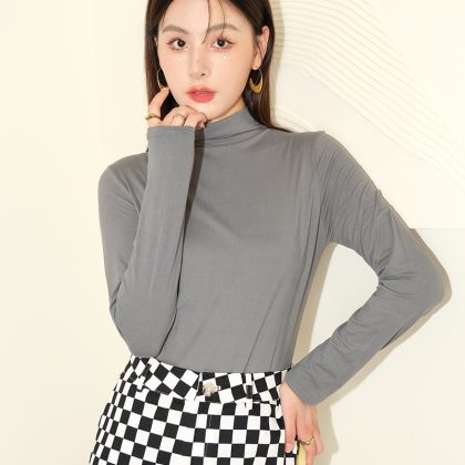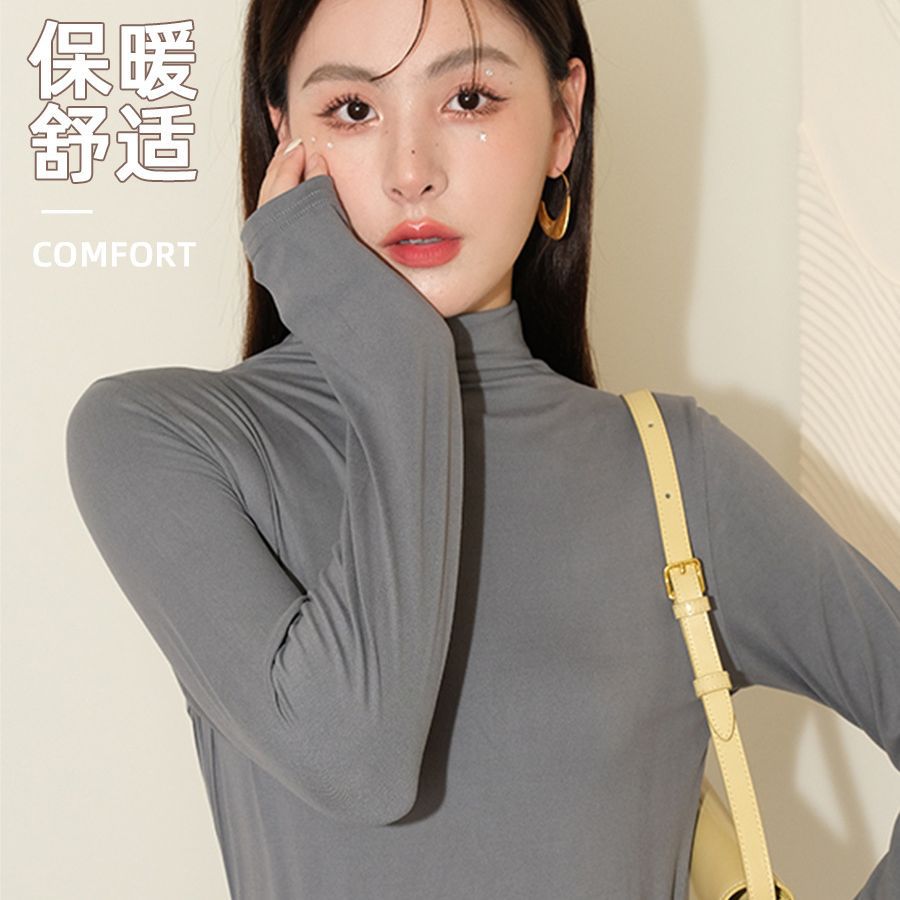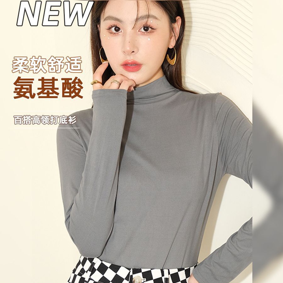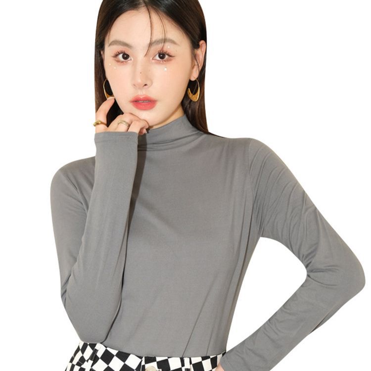 | nameOriginal | Gray half turtleneck bottoming shirt for women autumn and winter New style amino acid inner wear high-grade slim outer wear mid-collar top |