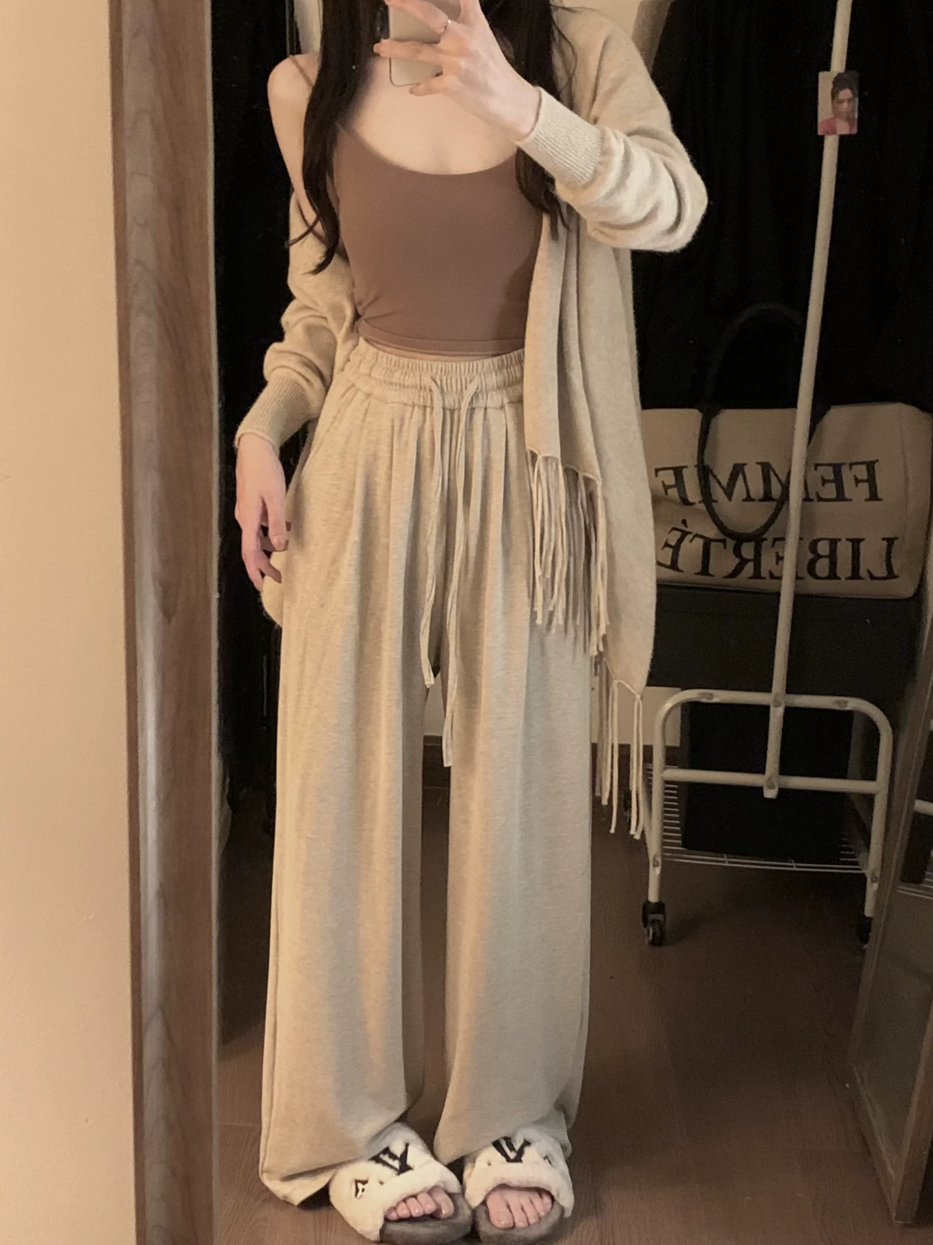 | nameOriginal | Gray lazy style soft and waxy high-waist slim straight pants |