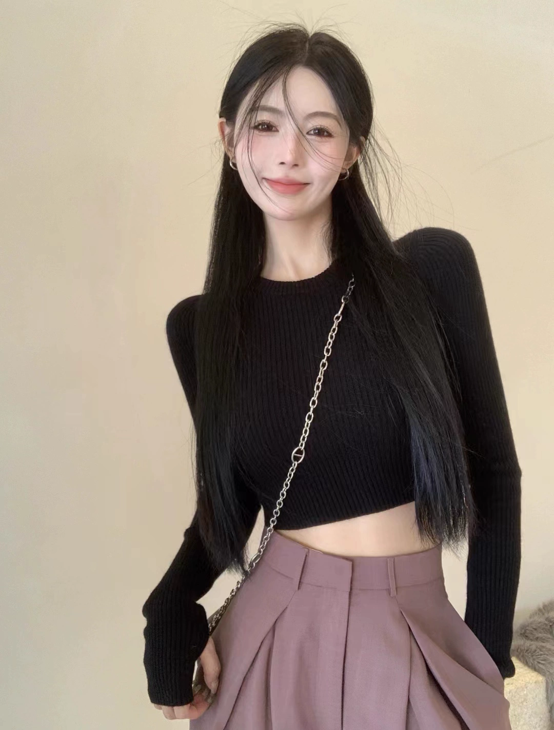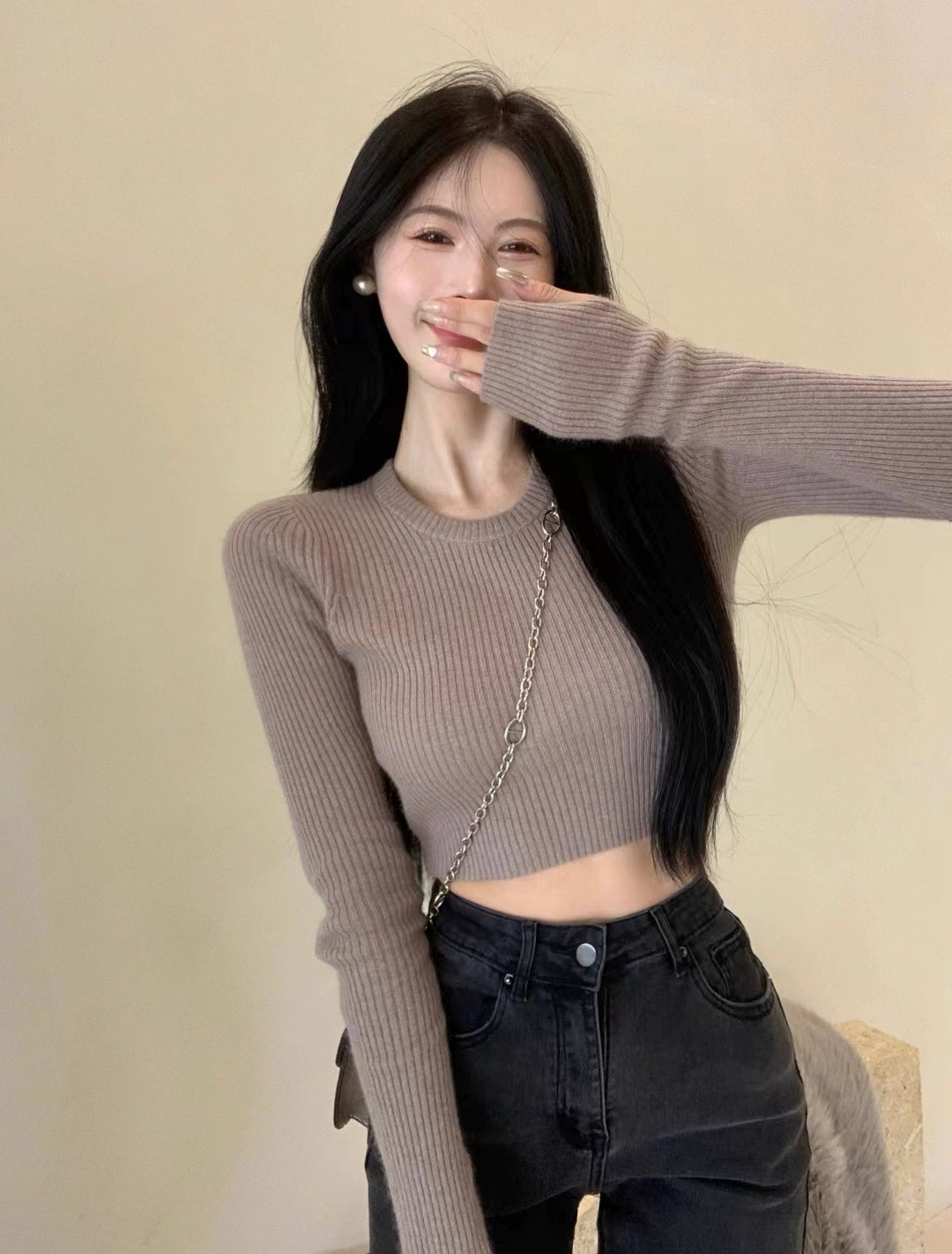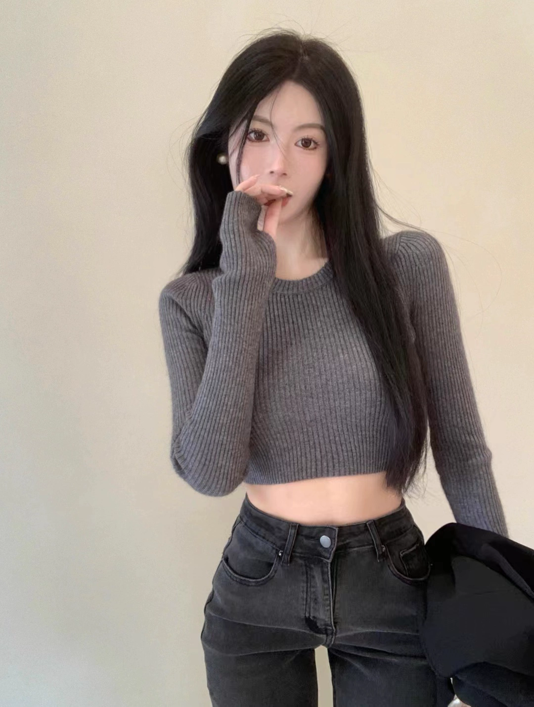 | nameOriginal | Gray midriff-baring western-style tight-fitting long-sleeved sweater |
