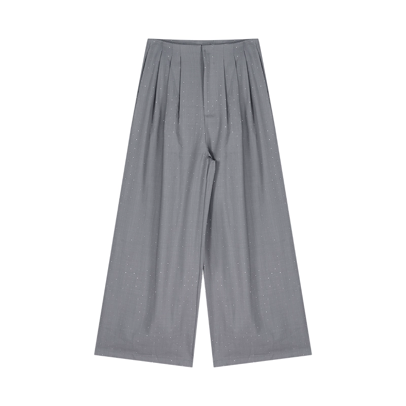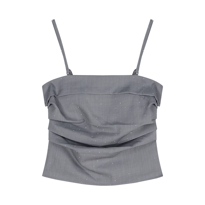 | nameOriginal | Gray pleated women's summer casual two-piece set with rhinestones |
