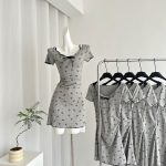Gray polka dot waist slimming fake two-piece bow
