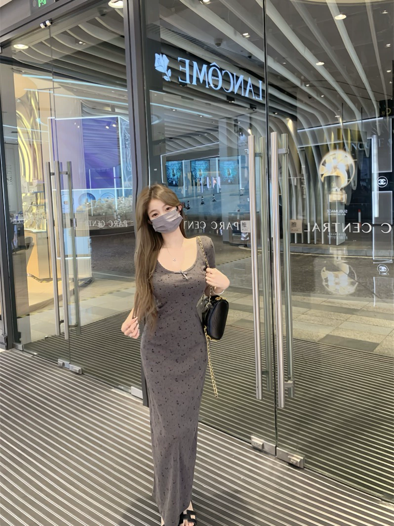 | nameOriginal | Gray short-sleeved dress summer hip-covering bow |