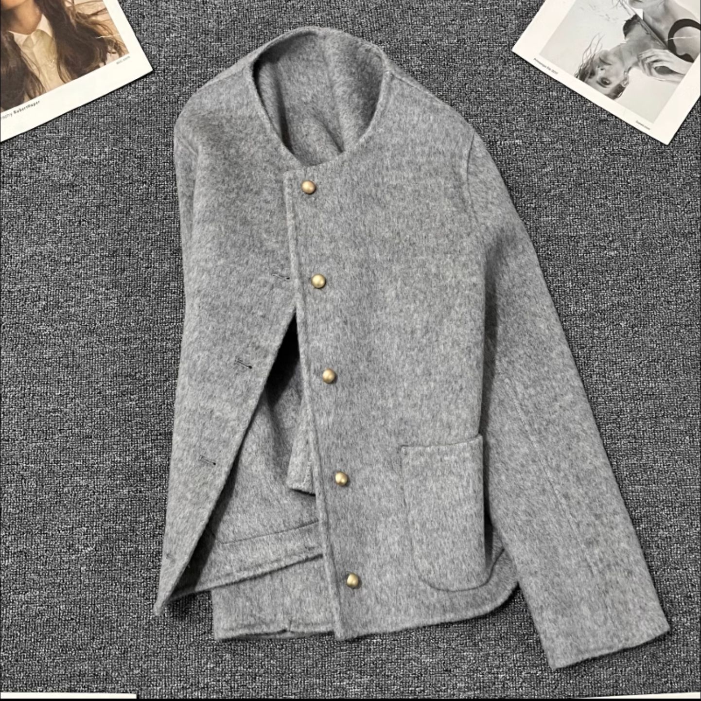 | nameOriginal | Gray short wool double-sided woolen coat for women 2024 new spring and autumn design sense small coat fashion |
