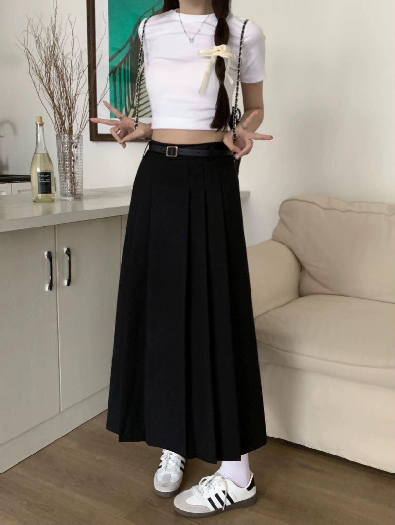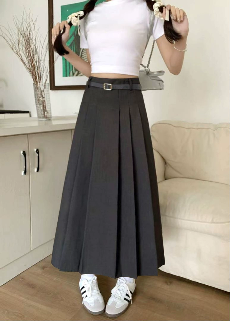 | nameOriginal | Gray slimming mid-length a-line pleated skirt suit |