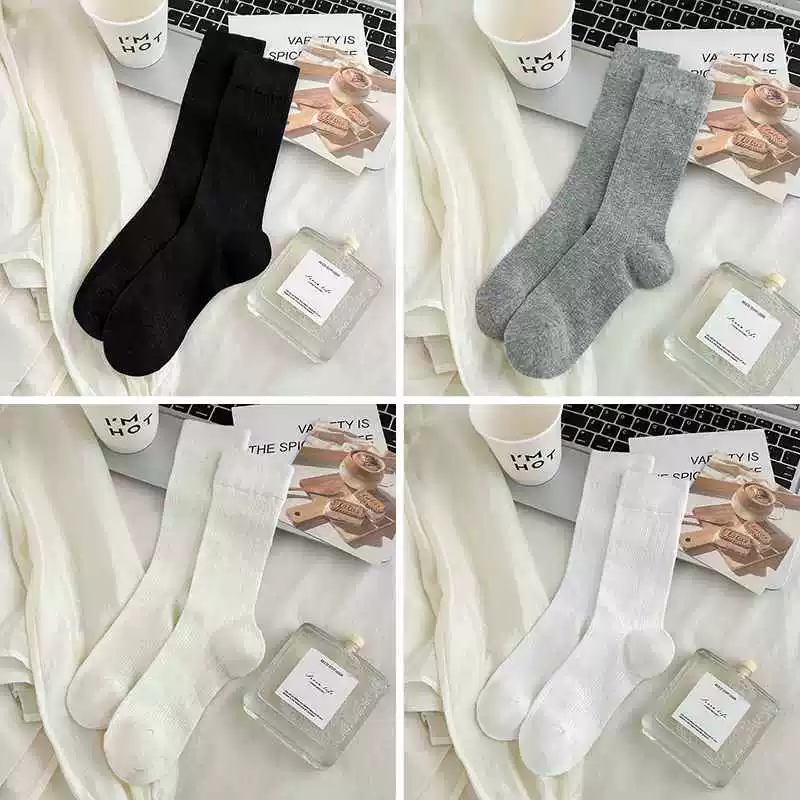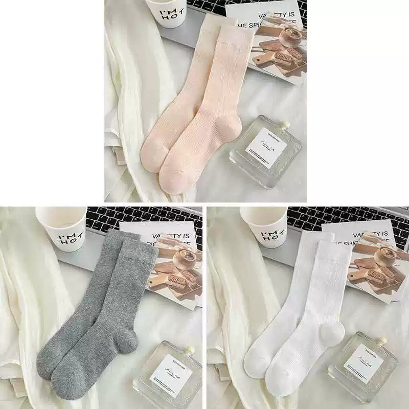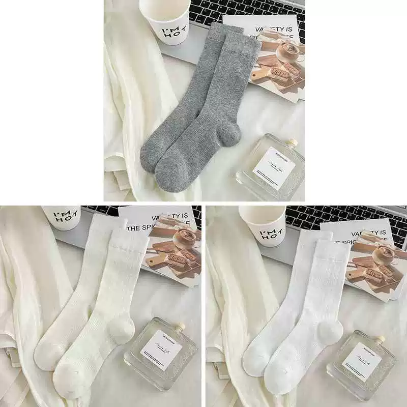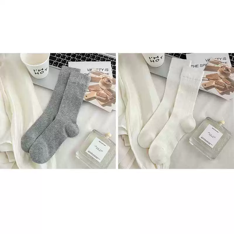 Gray socks women's mid-calf socks spring and summer thin pure cotton anti-pilling Japanese white summer pile boneless stockings