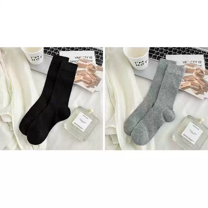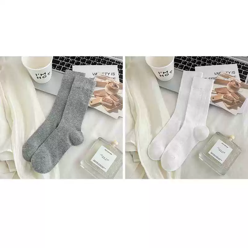 Gray socks women’s mid-calf socks spring and summer thin pure cotton anti-pilling Japanese white summer pile boneless stockings