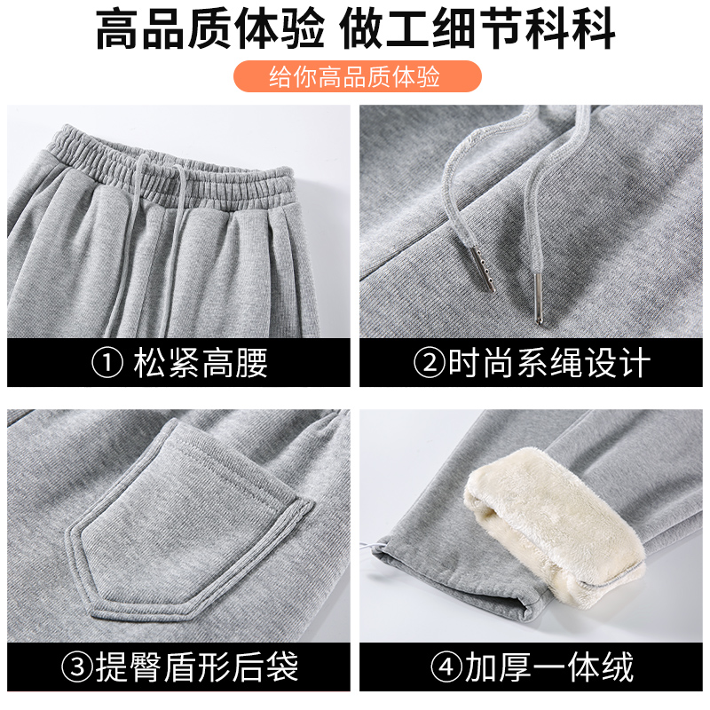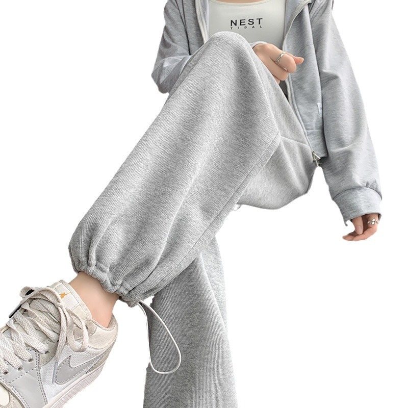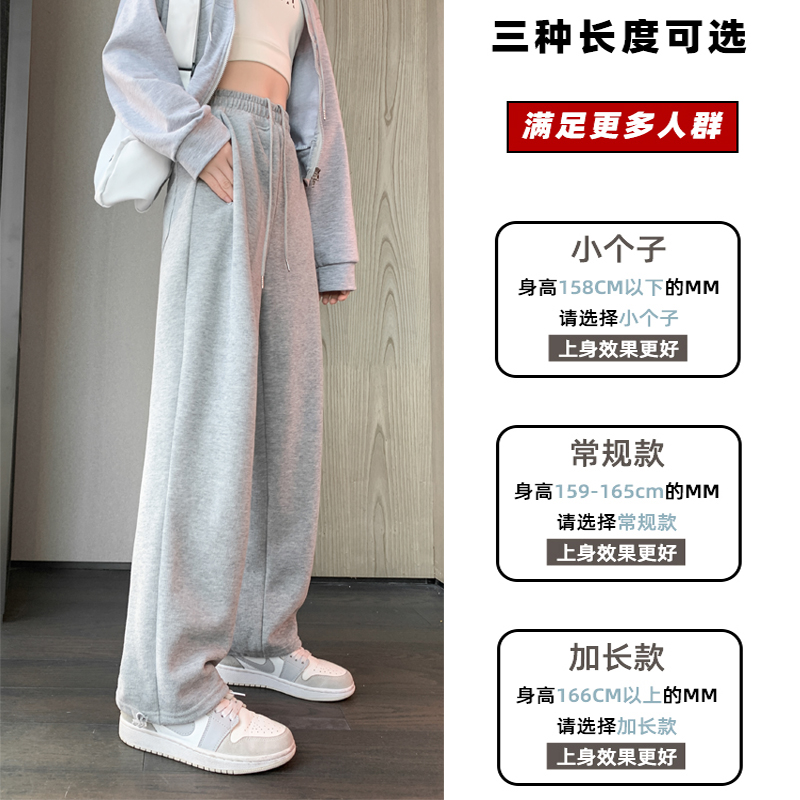 Gray sports pants women’s spring/autumn/winter fleece-lined thick high waist draping loose straight wide leg pants American casual sweatpants