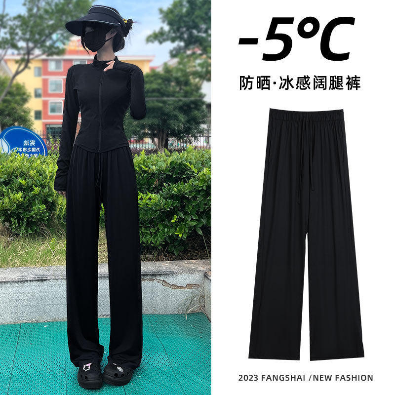 | nameOriginal | Gray sports pants women's summer thin high waist straight loose cool mosquito-proof sun protection casual ice silk wide-leg pants |
