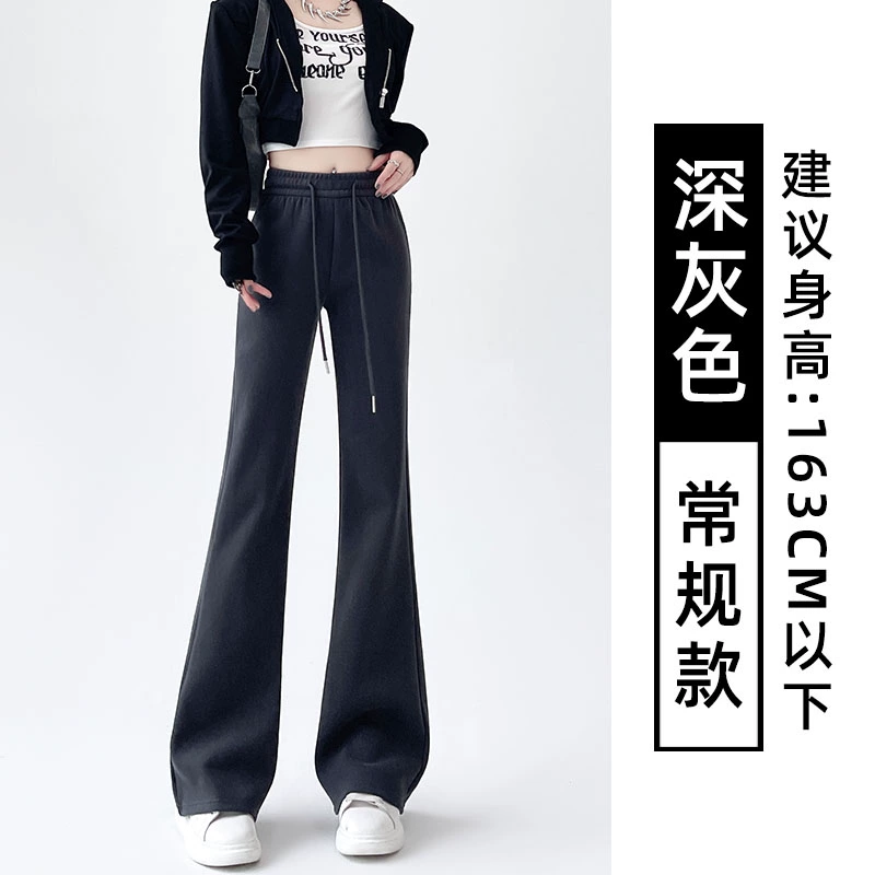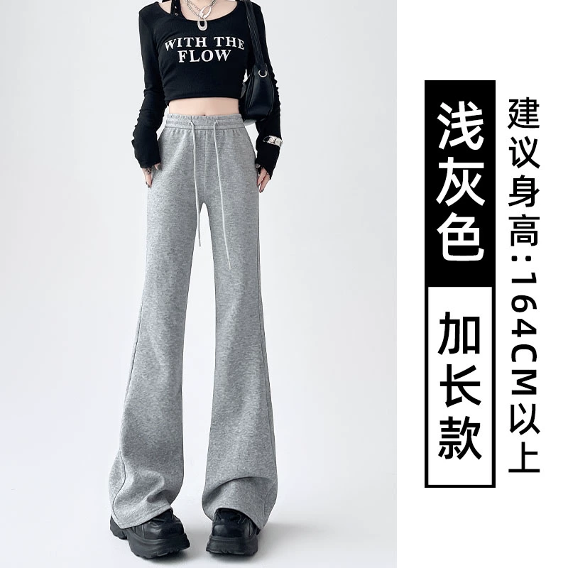 Gray spring and autumn high waist hip lifting casual micro-flare trousers