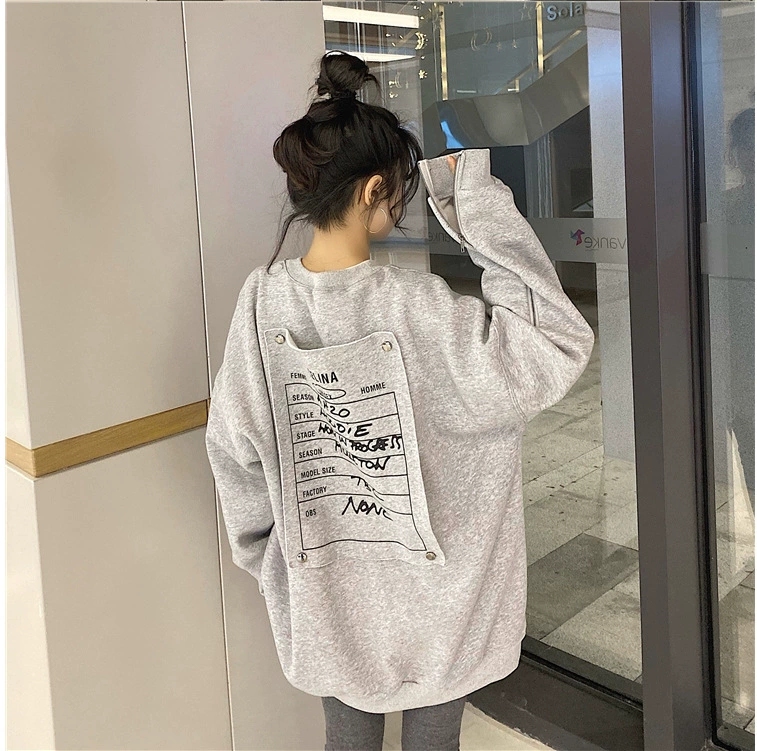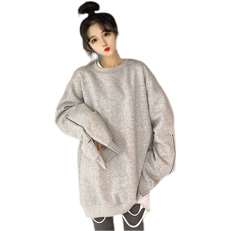 Gray Spring Autumn and Winter Sweater Women's 2024 New Loose Oversize Trendy Brand Plus Velvet Bottoms Missing Jacket