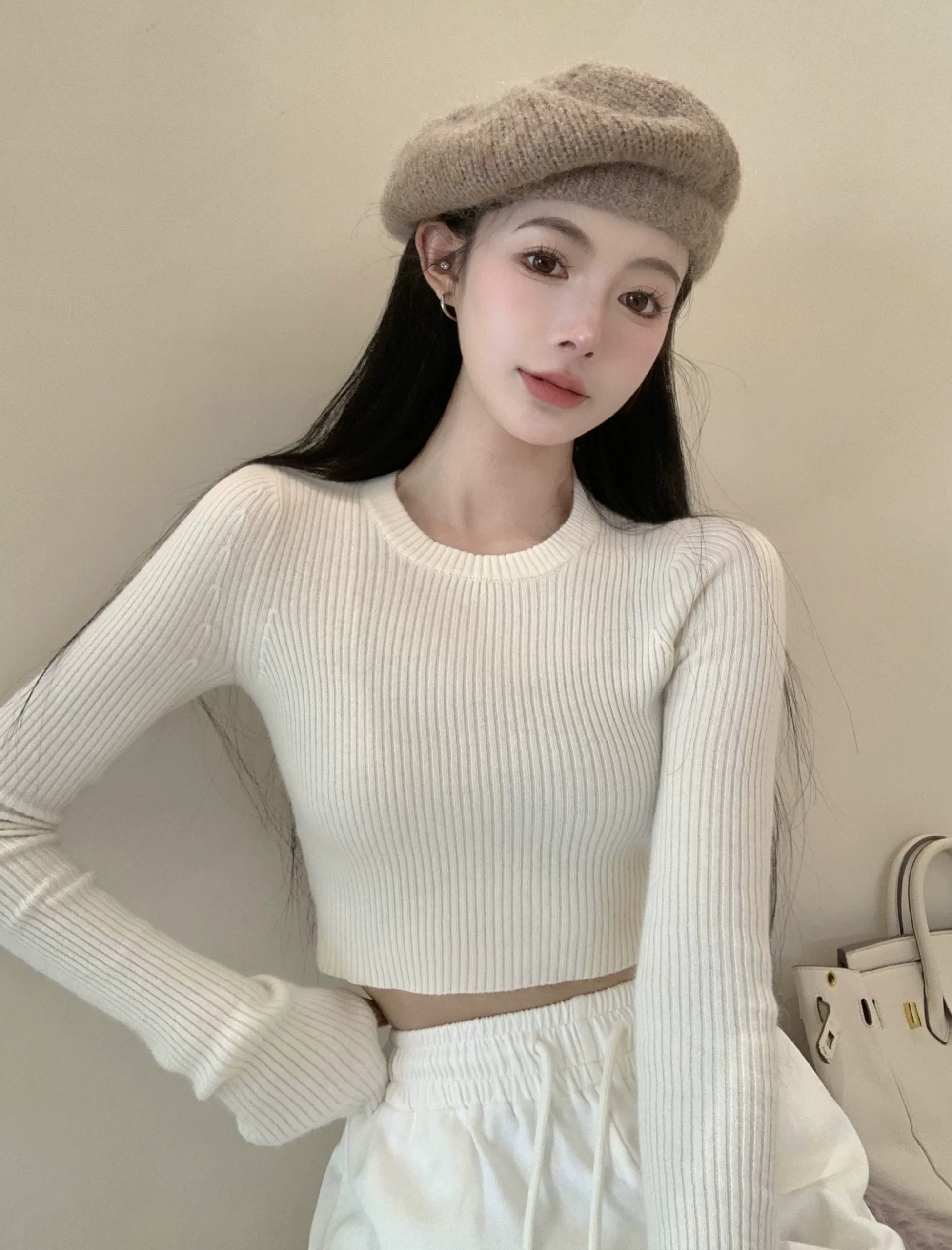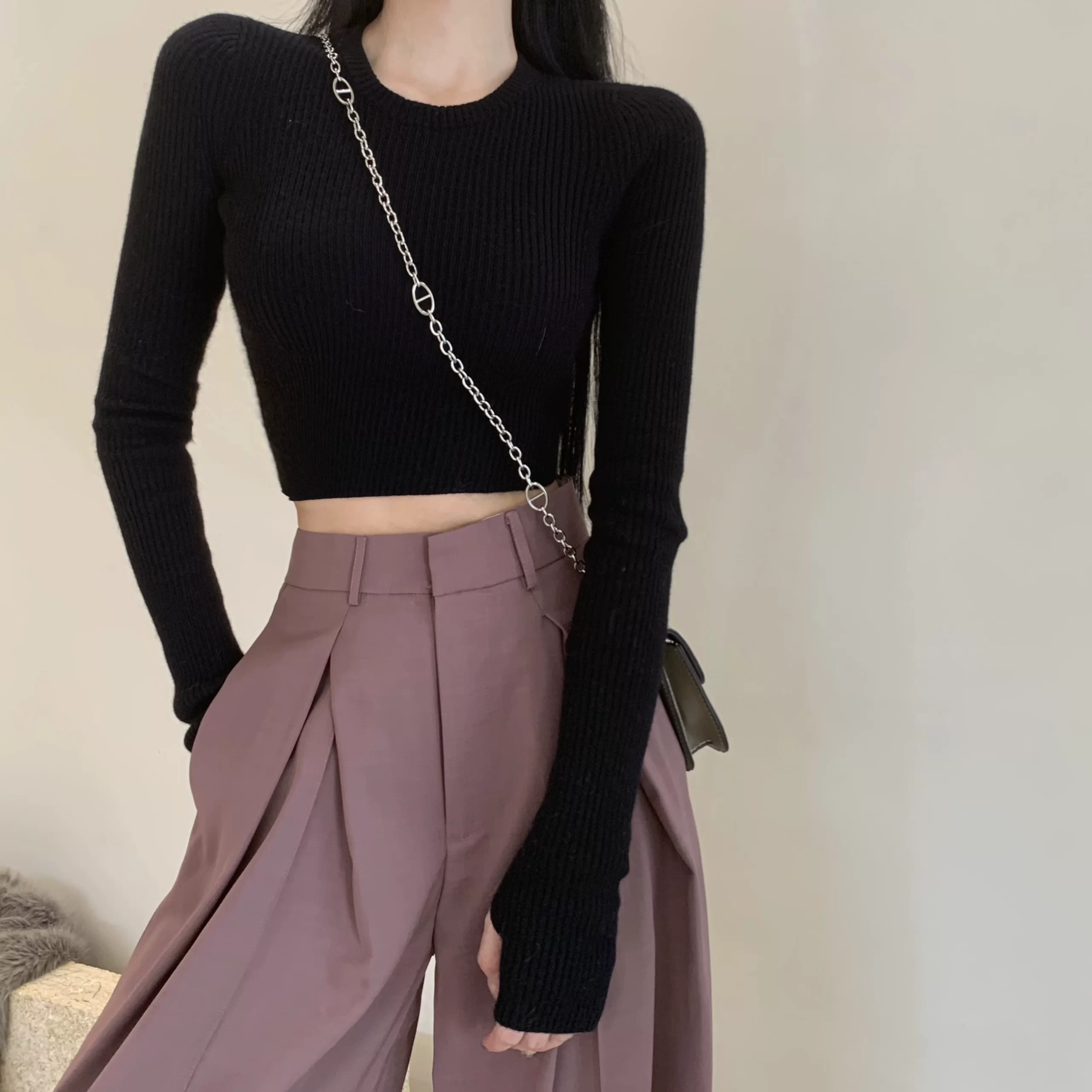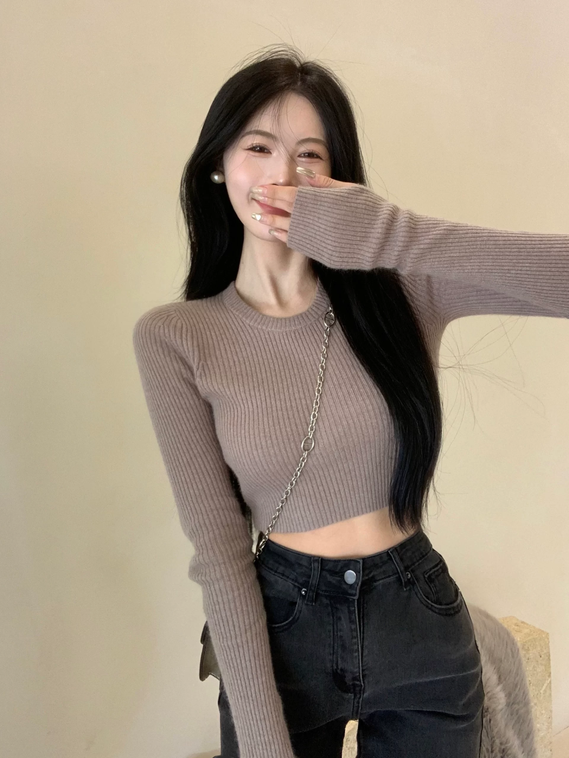 | nameOriginal | Gray spring fit midriff-baring long-sleeved sweater |