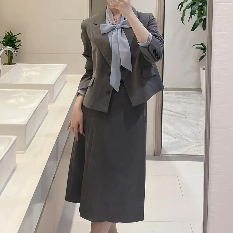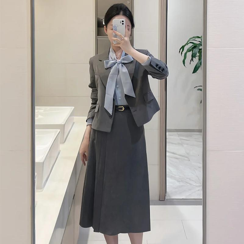 | nameOriginal | Gray suit suit women's spring and autumn College student education interview wear small pleated skirt temperament professional formal wear |