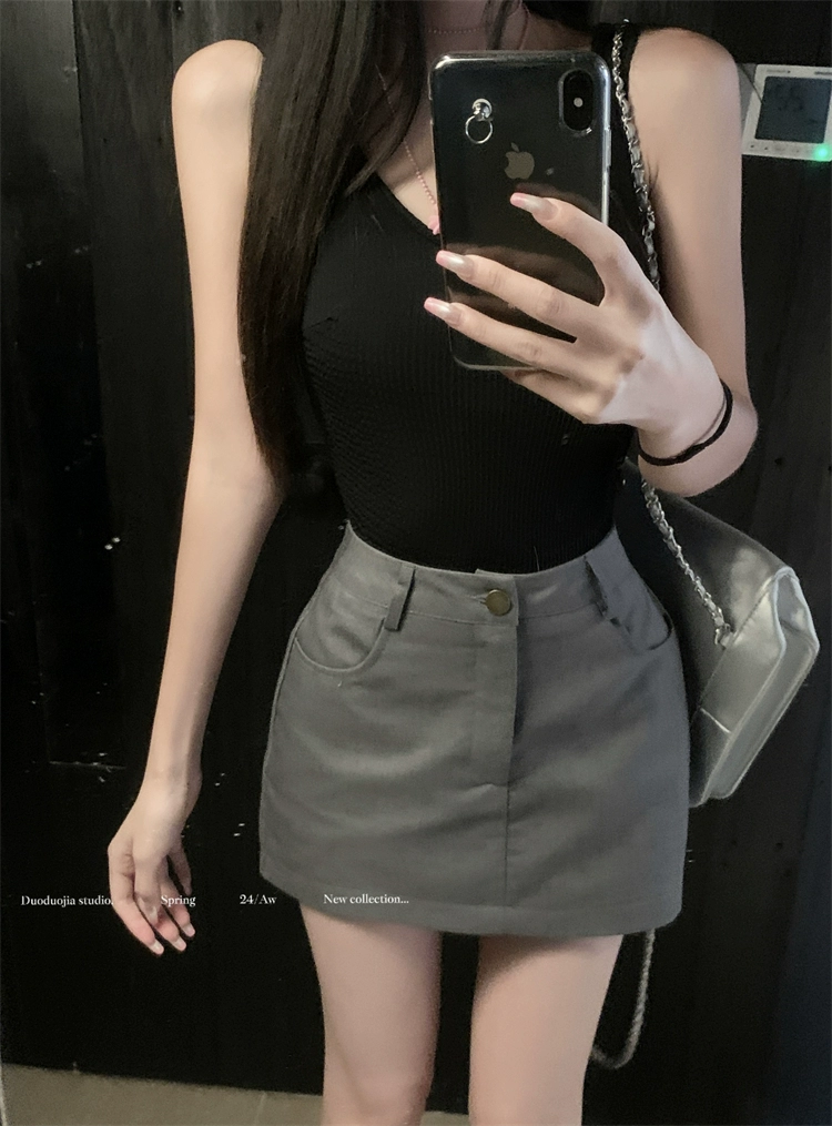 | nameOriginal | Gray summer short skirt, versatile high-waist hip suit |