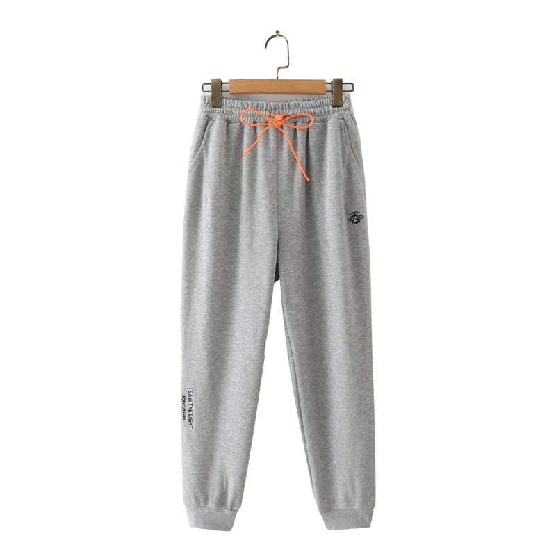 | nameOriginal | Gray sweatpants women's loose fit autumn new drawstring harem pants bee embroidery large size contrasting sweatpants |